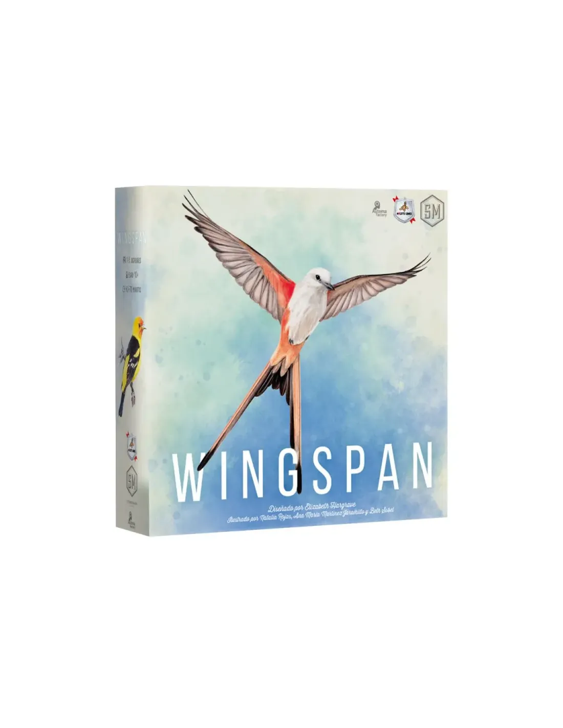 Características del Juego de Mesa WingspanWingspan es un juego de mesa competitivo para 1 a 5 jugadores en el que te convertirás en un apasionado ornitólogo: ya sea investigador, observador o coleccionista de aves. Tu objetivo será atraer a las especies más interesantes a tu aviario y optimizar sus habilidades para formar potentes cadenas de acciones. Con un diseño cuidado y componentes de gran calidad, Wingspan ofrece una experiencia estratégica, relajada y sorprendentemente educativa.Mecánicas de juego envolventes y temáticasCada turno es una oportunidad para desarrollar tu aviario eligiendo entre acciones como conseguir alimento, poner huevos o jugar nuevas cartas de aves. Cada carta representa una especie real, con habilidades que interactúan entre sí para formar potentes sinergias entre hábitats.3 hábitats distintos: bosque, pradera y humedal, cada uno con funciones específicas.Cartas de aves ilustradas: más de 170 especies con habilidades únicas.Motor de acciones en cadena: activa efectos combinados y estrategias profundas.Componentes de alta calidad y diseño inmersivoWingspan destaca también por su presentación. Desde la torre de dados en forma de comedero hasta las miniaturas de huevos jaspeados, todo está pensado para una experiencia de juego inmersiva y agradable tanto a nivel visual como táctil.Torre de dados con forma de comedero de avesHuevos de plástico en colores suaves y variadosTableros individuales de jugador + tablero de puntuación globalCondiciones de victoria y rejugabilidadAl final de la partida, el jugador con más puntos será el ganador. Los puntos se consiguen al jugar aves, cumplir objetivos de ronda, completar cartas de bonificación, colocar huevos, acumular alimento y solapar aves.Duración aproximada: 40 a 70 minutosNúmero de jugadores: 1 a 5Edad recomendada: A partir de 10 añosOtras especificacionesIdioma: EspañolIncluye más de 170 cartas de avesModo automa para partidas en solitario