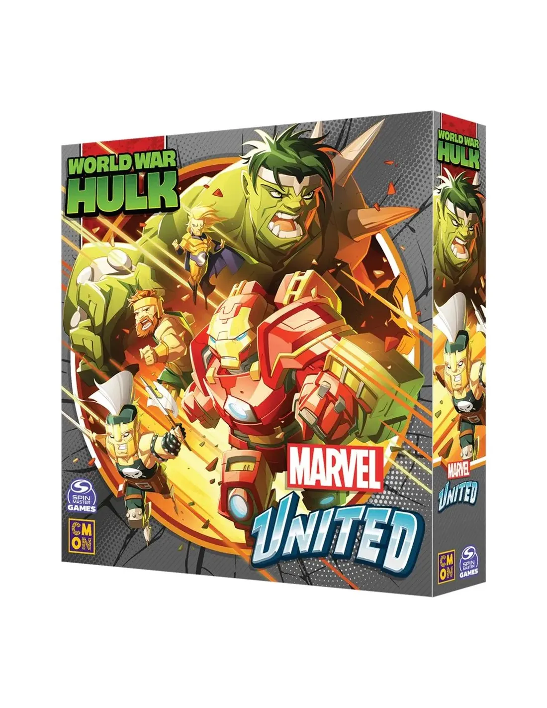 ¡Nueva York se convierte en una arena de gladiadores cuando los héroes más poderosos deben medirse con Hulk Rompemundos!Hulk fue desterrado de la Tierra al planeta Sakaar, donde se convirtió en gladiador. Ahora es más fuerte que nunca y está cegado por la ira debido a la muerte de su familia. Con el apoyo de suWarbound, Hulk regresa a la Tierra decidido a vengarse con dureza de aquellos que le hicieron daño y de cualquiera que se atreva a plantarle cara.World War Hulk es una expansión para Marvel United que incluye a algunos de los Héroes y Antihéroes más duros del universo, así como nuevos Lugares donde librar sus batallas. ¡Y es que la lucha esinevitable cuando te consume The Void o eres, literalmente, el dios de la guerra!Puede que ni siquiera la imponente armadura Hulkbuster sea suficiente para enfrentarse a Hulk cuando está cegado por la ira y busca aplastar el mundo entero.CONTENIDO2 miniaturas de Héroe, 3 miniaturas de Antihéroe, 67 cartas de Héroe, 2 cartas de Pertrechos, 3 tableros de Villano, 36 cartas de Plan maestro, 18 cartas de Amenaza, 1 carta de Furia, 3 Lugares, 7fichas, 1 hoja de reglasNOTASe necesita una caja básica de Marvel United para disfrutar de esta expansión.Título MU: World War HulkReferencia MUN19ESFecha de lanzamiento 25/10/2024Editorial CMONCategoría Juego de tableroColección Marvel UnitedIdioma EspañolEdad mínima recomendada 14 añosDuración 40'Número de jugadores 1 a 5