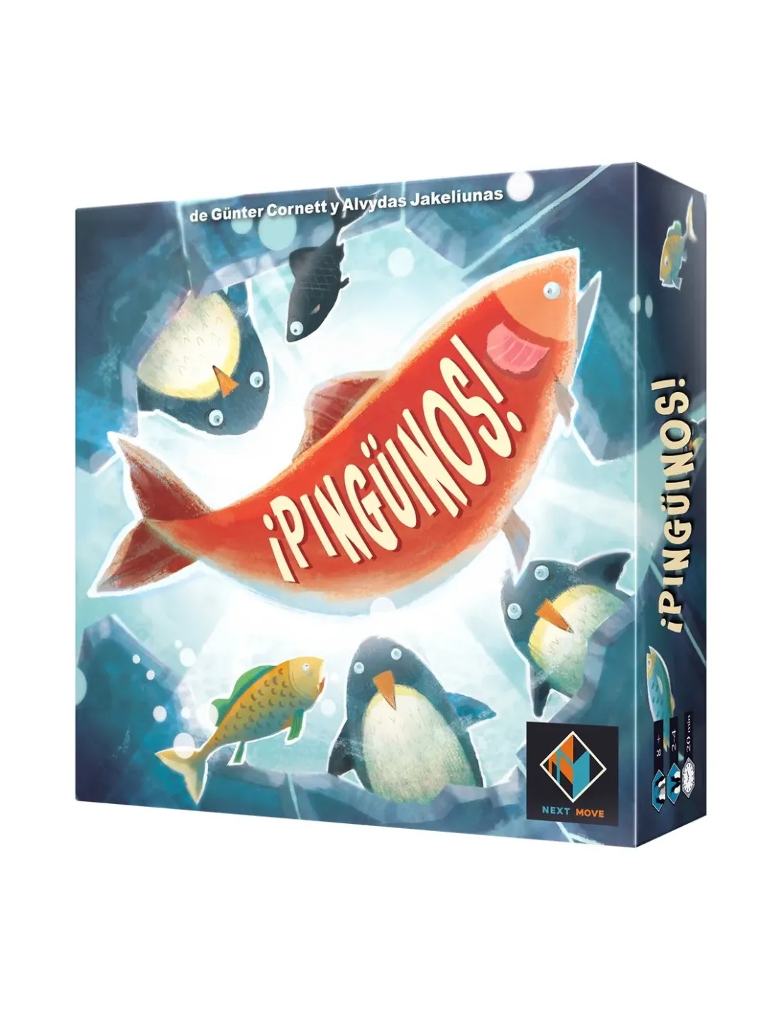 Nuevo arte, nuevo diseño. ¡Y eso es solo la punta del iceberg!Han pasado veinte años desde el lanzamiento original y Next Move Games quiere que los pingüinos sigan comiendo pescado.Con los nuevos tableros Oceánicos podrás mantener las Placas de hielo en su sitio y retirarlas fácilmente.¡Vas a contonearte de placer jugando a esta nueva edición!1 Mueve tu Pingüino en línea recta.2 Obtén la Placa de hielo en la que tu Pingüino empezó su movimiento.3 Quien consiga más peces ganará la partida.¡Nuevos tableros Oceánicos para un montaje fácil y rápido de la partida!CONTENIDO4 tableros Oceánicos, 16 Pingüinos, 60 Placas de hielo, 1 reglamento.Título ¡Pingüinos!Referencia NMG60120ESFecha de lanzamiento 20/10/2023Editorial Next Move GamesCategoría Juego de tableroColección Hey, That's My Fish!Idioma EspañolEdad mínima recomendada 8 añosDuración 20'Número de jugadores 2 a 4