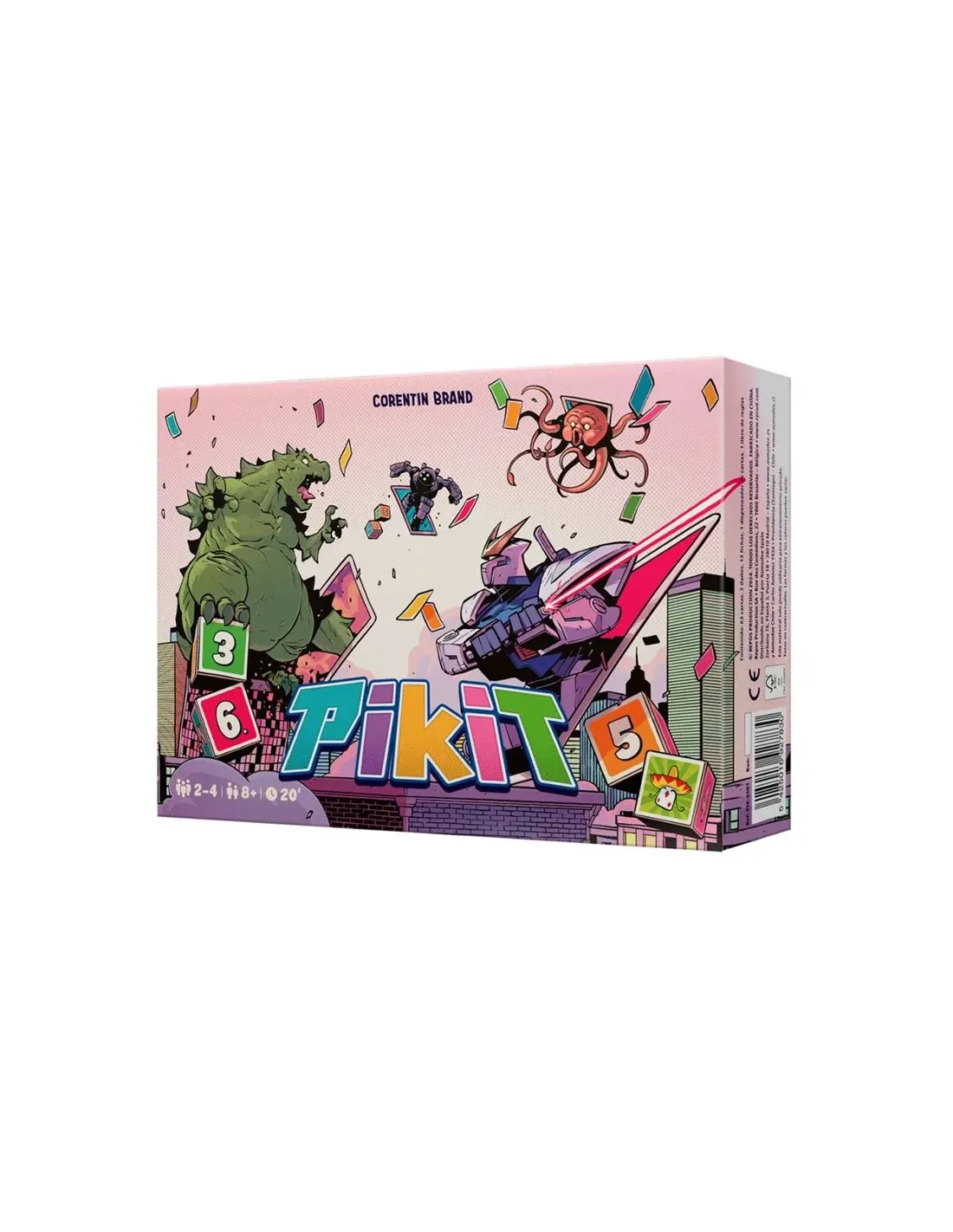 Pikit es un juego lleno de sorpresas, en el que triunfan la suerte, los golpes bajos y la elección del momento adecuado.¡Depende de ti tomar las decisiones correctas!Resumen y objetivo del juegoTira los dados para invocar a Kaij(1) o Mecha(2) y tomar las cartas que los representan.Juega estas cartas para usar sus efectos o consérvalas en tu mano hasta el final de la partida para obtener sus puntos. El jugador con la puntuación más alta gana la partida.(1) Los Kaij () son criaturas extrañas, monstruosas y gigantescas.(2) Los Mecha () son enormes robots pilotados, normalmente de forma humanoide.Contenido63 cartas (53 de Kaij, 6 de Mecha, 4 de ayuda de juego)2 dados12 fichas (6 de Pareja, 6 de Herida)1 dispensador de cartasReglamentoTítulo PikitReferencia PIKES01Fecha de lanzamiento 26/04/2024Editorial Repos ProductionCategoría Juego de tableroColección PikitIdioma EspañolEdad mínima recomendada 8 añosDuración 25'Número de jugadores 2 a 4