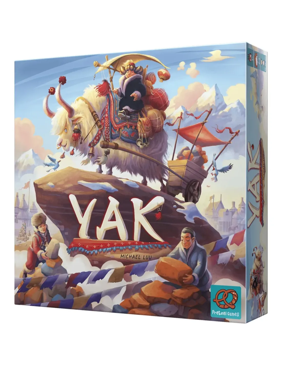 El anciano mayor de tu aldea te ha encomendado la tarea de construir unatorre de piedra para ayudar a los comerciantes ambulantes y a sus yaks aencontrar tu aldea en el Himalaya. Cada jugador construye su torre de piedraestratégicamente intercambiando alimentos por Piedras concretas. Sinembargo, la densa niebla de esta región podría desorientar a los yaks yarruinar tus planes de construcción. ¡Trabaja duro parar sobreponerte a laniebla y a tus rivales, y construye tu camino hasta la victoria!CONTENIDO1 Tablero de juego, 1 Bolsa, 64 Piedras, 8 Piedras de cristal, 1 Montaña, 1indicador de Niebla, 5 Fichas de Niebla, 45 Fichas de Alimento, 4 Yaks, 4Remolques, 8 Carteles, 4 Tableros de jugador, 12 cartas de Acción, 8 cartas deBonificación, 1 marcador de Puntuación, 1 Estupa, 1 Cría de Yak, 1Reglamento.FICHA TÉCNICATítulo: YakReferencia: PZG20080ESFecha de lanzamiento: 23/09/2022Editorial: Plan B GamesCategoría: Juego de tableroColección: YakIdioma: EspañolEdad mínima recomendada: 8 añosDuración: 30-60'Número de jugadores: 2 a 4EAN: 8435407640290