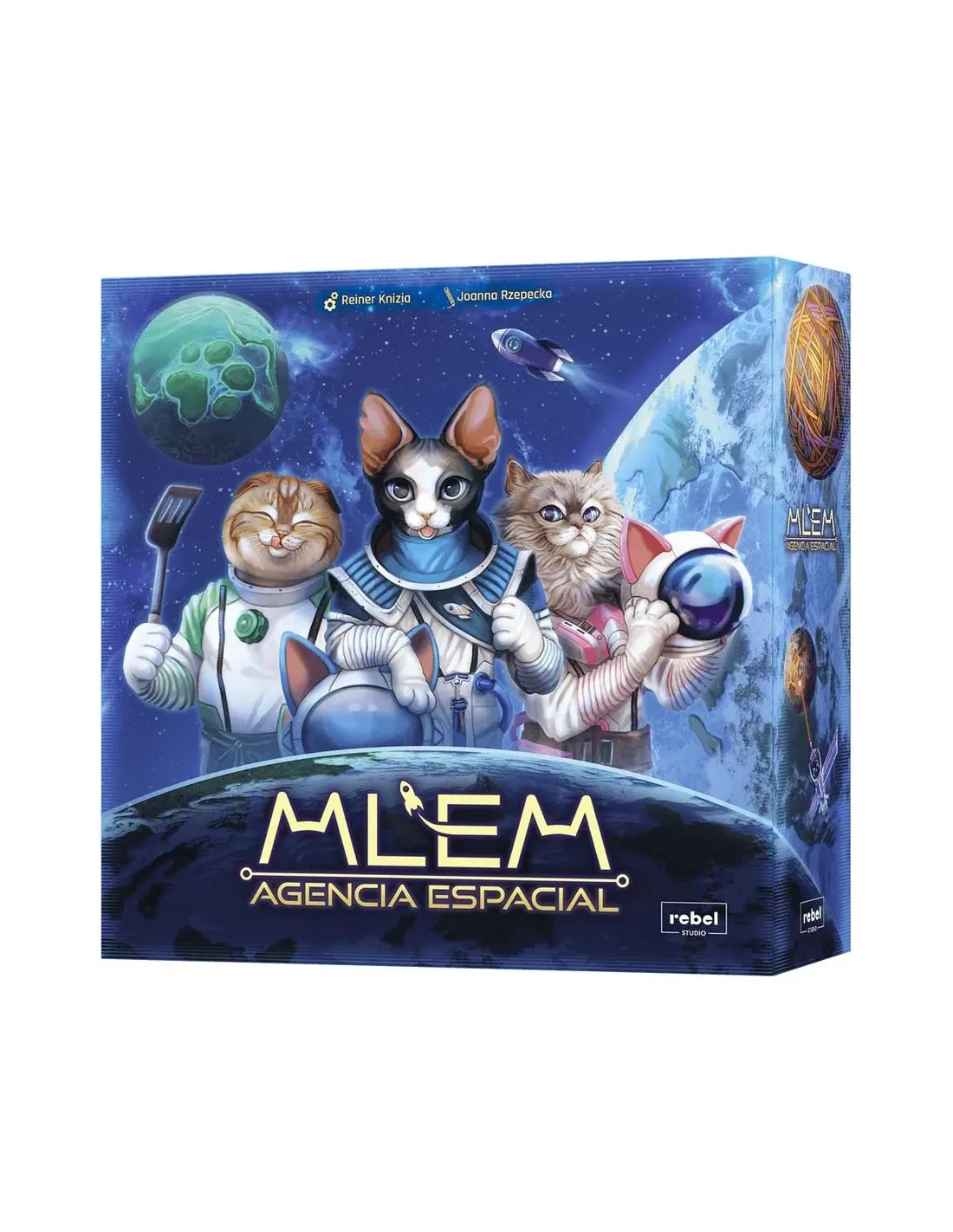MLEM Agencia Espacial es un juego de tablero de corte familiar en el que asumes el control de la comandancia de una expedición estelar. Pero no eres un alto cargo cualquiera, al contrario, eresalguien muy especial, ¡puesto que tus astronautas songatos! Estos intrépidos y testarudos astronautas hace ya mucho que se apoderaron de la Tierra y ahora desean conquistar todo el universo. Sinembargo, su imprudencia provocará más de un desastre.Surca las estrellas a bordo de un cohete espacial o confía en tus instintos felinos y abandona la nave antes de que se estrelle. La fama y el reconocimiento del mundo entero ronroneará el nombre delmejor comandante de esta agencia espacial gatuna.CONTENIDO5 tableros de Astronauta, 40 fichas de Astronauta, 64 fichas de Puntos, 6 dados, 1 indicador de Cohete, 1 Cohete, 1 tapete Estelar, 4 fichas de Objetivo, 1 ficha de Desastre sideral, 20 fichas deReconocimiento, 20 fichas de Misión secreta, 5 fichas de Ovni, 1 Ovni, 14 fichas de Expedición, 1 reglamento.Título MLEM Agencia EspacialReferencia REMLE01ESFecha de lanzamiento 19/01/2024Editorial RebelCategoría Juego de tableroColección MLEM Agencia EspacialIdioma EspañolEdad mínima recomendada 8 añosDuración 30-60'Número de jugadores 2 a 5