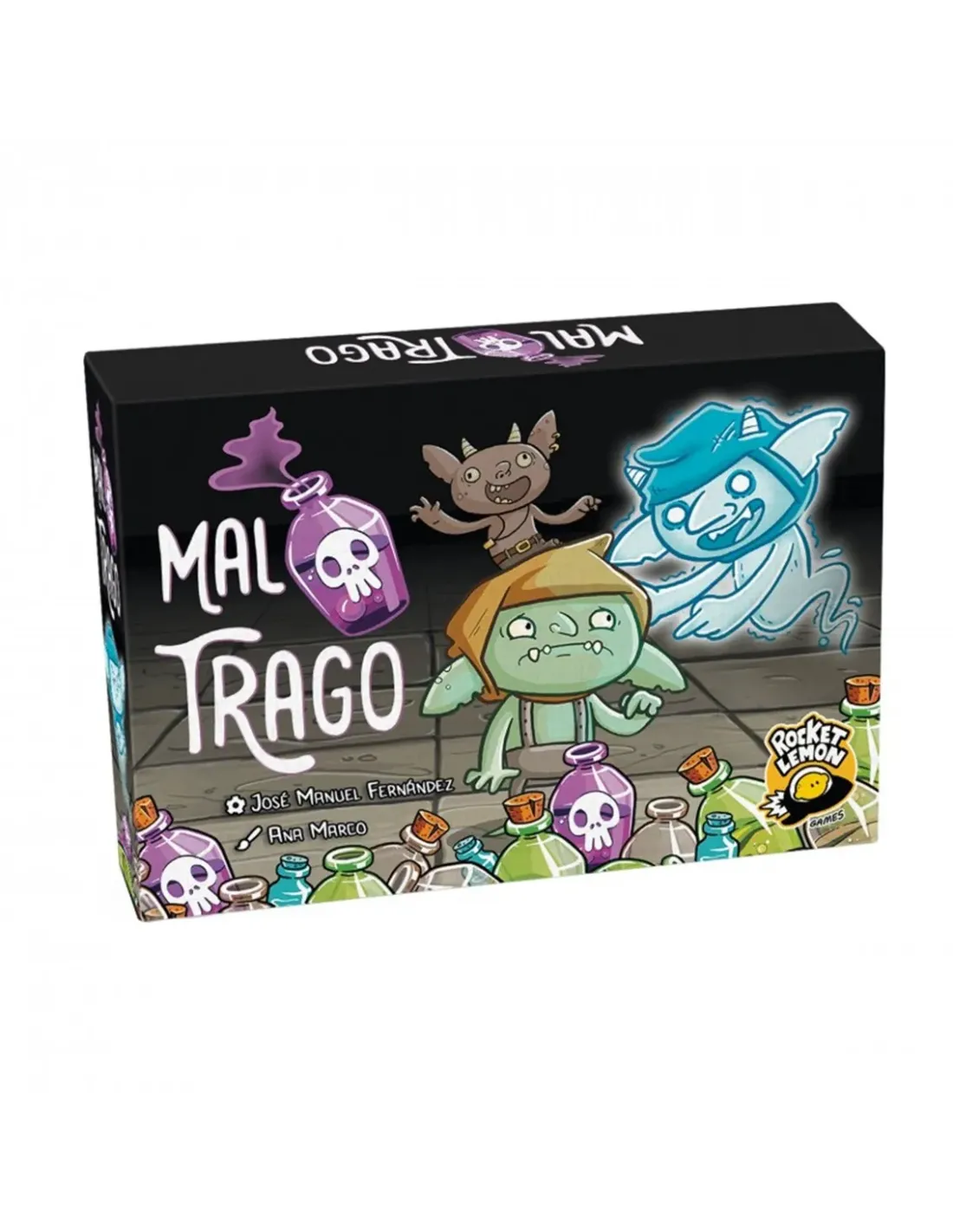 IMPORTANTE: La nueva edición (imagenes con los tokens de antidoto de plastico en vez de los de cartón) entraran en vigor a partir de finales de Junio.Previamente aun se podran obtener ediciones anteriores con los tokens en cartón.La bruja necesita conejillos de indias para probar sus nuevas pocionesy nosotros, sus leales esbirros goblins, hemos sido designados comovoluntarios forzosos para esta ocasión.CON CARTAS PROMOCIONALES (hasta agotar existencias)No es tan terrible como parece, vale, puede que algunas pocionestengan un efecto mortal,pero la jefa, siempre generosa, ha prometido que uno de nosotrossaldrá ileso, como premiopor su astucia, por su instinto y porque alguien tendrá que limpiarlotodo al final.¡Sobrevive a las pociones de la bruja y conviértete en el último goblinsuperviviente!Mal Trago es un party-goblin para grupos de 4 a 10 goblins, recomendadopara goblins a partir de 8 años y con una duración aproximada de 15-20minutos. En Mal Trago encontraremos pociones, conjuros, antídotos,goblins y sobretodo muchas risas!!La bruja necesita conejillos de indias para probar sus nuevas pociones ynosotros, sus leales esbirros goblins, hemos sido designados comovoluntarios forzosos para esta ocasión. No es tan terrible como parece,vale, puede que algunas de esas pociones tengan un efecto mortal... pero lajefa, siempre generosa, ha prometido que uno de nosotros saldrá ileso,como premio por su astucia, por su instinto y porque alguien tendrá quelimpiarlo todo al final...En Mal Trago encontraremos dos tipos de pociones:Las pociones seguras son las pociones favoritas de los goblins y aunquesu sabor es repugnante (en ocasiones sabiendo a ranas, unicornio obrócoli), estas pociones no suponen ningún peligro para ellos.Al bebértelas como mucho se te puede agrandar la cabeza (sí, mas aún),salirte un grano o cambiar de color, nada preocupante.Aunque las temidas y letales pociones mortales son todo lo contrario. Sureceta ha sido perfeccionada por la bruja durante largos años y estospobres goblins son los encargados de comprobar su mortal resultado.La bruja sabe que los goblins son los conejillos de indias perfectos, no sequejan y no preguntan. Pero aunque parezca todo lo contrario, a veces losgoblins usan su pequeño cerebro. Han conseguido elaborar un brebaje queellos llaman la zuztanzia. Se trata de un antídoto capaz de anular el efectode una poción mortal.Al comienzo de la partida la bruja entregará a cada goblin, una pociónmortal y tres pociones seguras (por supuesto cada goblin tendrá unfrasquito de zuztanzia escondido). Durante su turno, cada goblin cogeráuna carta del mazo de acciones y la leerá en voz alta.Estas cartas nos dirán qué goblin o goblins deben beber pociones eseturno.Cada goblin afectado le dará la vuelta al azar a una de sus cartas de poción,intentando no beberse la temida poción mortal...Al coger una carta del mazo de acciones, encontraremos acciones básicasimpuestas por la bruja que deberemos obedecer (por ejemplo "Bebes tú" o"Bebe quien decida la mayoría") y también las divertidas cartas de conjuro.Los conjuros serán lanzados por el goblin que haya sacado la carta ypondrán una condición especial en la partida que todos los goblins deberáncumplir. El primer goblin que no lo haga, se beberá una poción.Los desafortunados goblins que se beban una poción mortal, no seráneliminados, se convertirán en fantasmas. Los fantasmas podrán fastidiar alos goblins supervivientes y, si todo sale bien, volver al juego para intentarhacerse con la victoria.Si consigues sobrevivir a las pociones de la bruja siendo el único goblinsuperviviente, ¡Habrás ganado!Mal Trago recurre a unas reglas sencillas y a una interacción máxima entregoblins/jugadores.Contiene 105 cartas.Jugadores: De 4 a 10 jugadores a partir de 8 años. Duración de la partida:20 minutos aproximadamente.