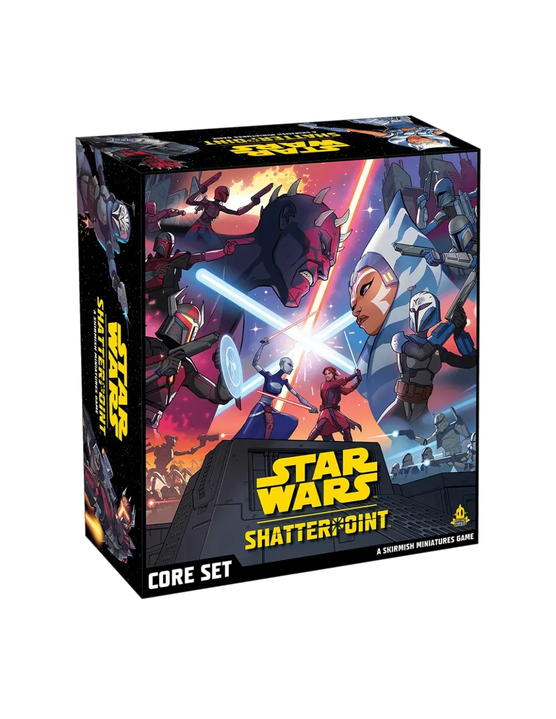 Son tiempos convulsos y los conflictos se extienden por incontables planetas desde los Mundos del Núcleo hasta el Borde Exterior....Estas crisis producen momentos de gran importancia, denominados puntos de fractura, en los que las acciones de unos pocos individuos pueden cambiar el curso de toda una batalla o incluso afectar el destino decivilizaciones enteras. Ya sea realizando operaciones clandestinas en lo más profundo del territorio enemigo o batiéndote en duelo con encarnizados rivales en medio de un enfrentamiento planetario de gran envergadura, tuselecciones importan. Aquí, rodeado por el entrechocar de los sables de luz y los disparos de las armas láser, tú decidirás el destino de la galaxia en Star WarsTM: Shatterpoint.Star Wars: Shatterpoint es un juego de escaramuzas con miniaturas para dos jugadores. En Shatterpoint, los jugadores toman el control de personajes emblemáticos de la galaxia de Star Wars y de sus aliados, y se enfrentanentre sí por completar objetivos de misión dinámicos. Pero no olvides que los mejores comandantes son los que aprenden a adaptarse y saben utilizar la Fuerza para hacerse con la victoria. Liderarás las fuerzas de la luz conAnakin Skywalker y Ahsoka Tano, o emprenderás una senda más oscura con la mortífera asesina Asajj Ventress y el despiadado Lord Maul? O tal vez prefieras forjar un nuevo destino por tu propia cuenta? ¡La elección será tuyaen Star Wars: Shatterpoint!CONTENIDO16 miniaturas, 23 piezas de terreno, 2 plantillas de movimiento, 5 plantillas de alcance, 14 cartas de Orden, 12 cartas de Perfil de unidad, 12 cartas de Postura, 1 carta de Misión, 9 cartas de Confrontación, 14 dados , ficha deConfrontación, 16 fichas de Predominio, 1 medidor de Confrontación, 1 hoja de fichas de cartón, 1 libro de reglas básicas.Título Star Wars: ShatterpointReferencia SWP01ESFecha de lanzamiento 02/06/2023Editorial Atomic Mass GamesCategoría Juego de MiniaturasColección Star Wars ShatterpointIdioma EspañolEdad mínima recomendada 14 añosDuración 90'Número de jugadores 2
