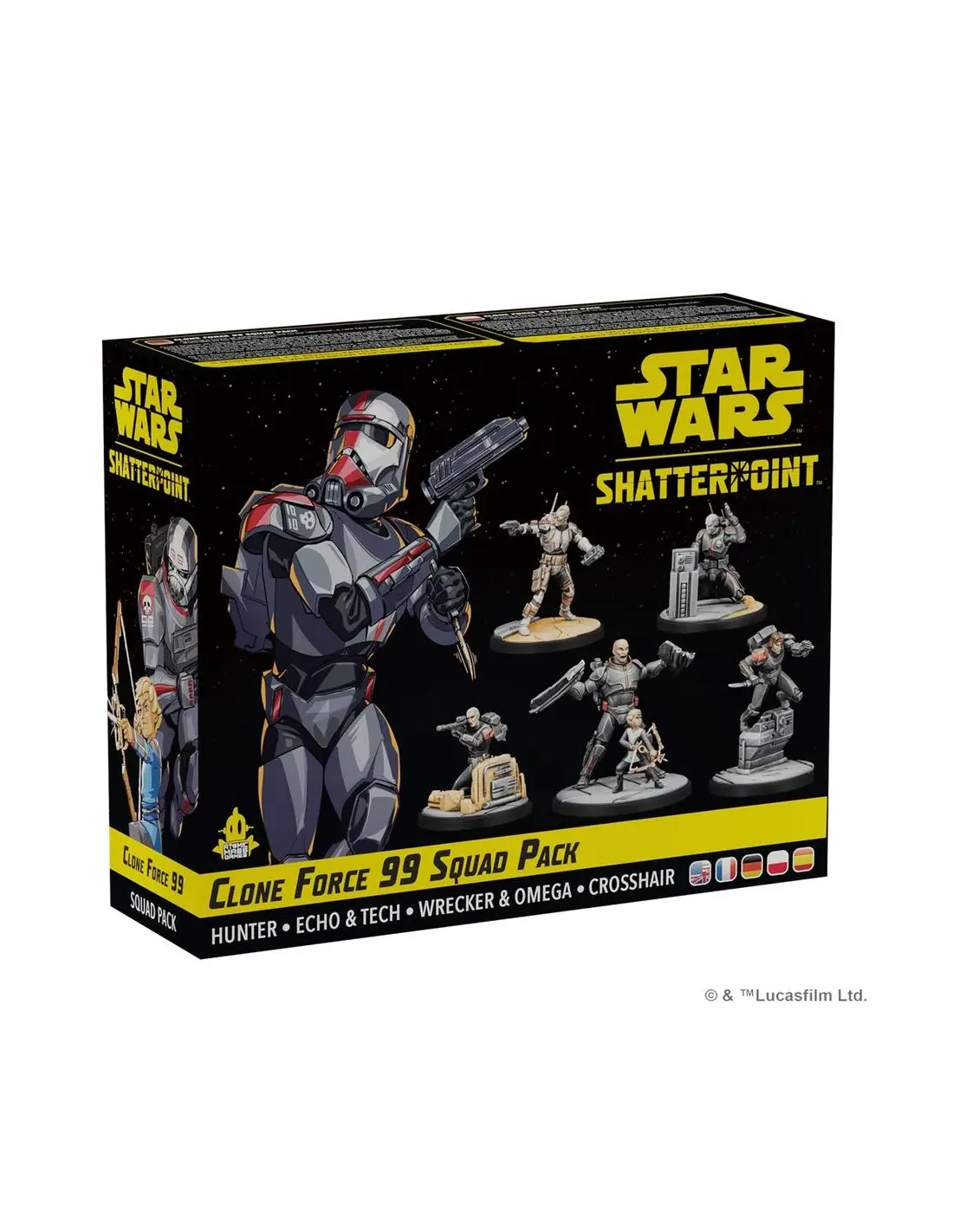«Tranquilo, nosotros también somos defectuosos.»- Omega¡En una fuerza de soldados clonados para ser idénticos, unos pocos sobresalen por ser únicos!Antaño conocida como la Fuerza Clon 99, esta unidad experimental de soldados clon desafía todas las expectativas debido a las extraordinarias capacidades otorgadas por sus mutacionesgenéticas. Adoptando nombres que describan su función en la unidad, la Remesa está liderada por Hunter, cuyos aguzados sentidos hacen de él un rastreador sin igual. Tech es el experto entecnología, valiéndose de su intelecto superior para piratear computadoras y burlar sistemas de seguridad. El grupo lo completan Crosshair, el francotirador, Wrecker, una fuerza imparable en elcombate a corta distancia, y Echo, un antiguo soldado CAR transformado en un cíborg.Al transformarse la República en el Imperio Galáctico, la Remesa se ve obligada a improvisar para sobrevivir, convirtiéndose en fugitivos. A sus filas se incorpora una joven auxiliar médica llamadaOmega que también es el resultado de un experimento de clonación. Protegerla supone para la Remesa Mala otro motivo para hallar su propio camino en una galaxia hostil.CONTENIDO5 miniaturas, 4 cartas de perfil de unidad, 4 cartas de postura y 4 cartas de orden.NOTASNo es un juego completo. Se necesita una caja básica de Star Wars Shatterpoint para jugar.Las miniaturas vienen desmontadas y sin pintar.Título Clone Force 99 Squad PackReferencia SWP38Fecha de lanzamiento 10/05/2024Editorial Atomic Mass GamesCategoría Juego de MiniaturasColección Star Wars ShatterpointIdioma Español/Alemán/Inglés/Francés/PolacoEdad mínima recomendada 14 añosDuración 90'Número de jugadores 2