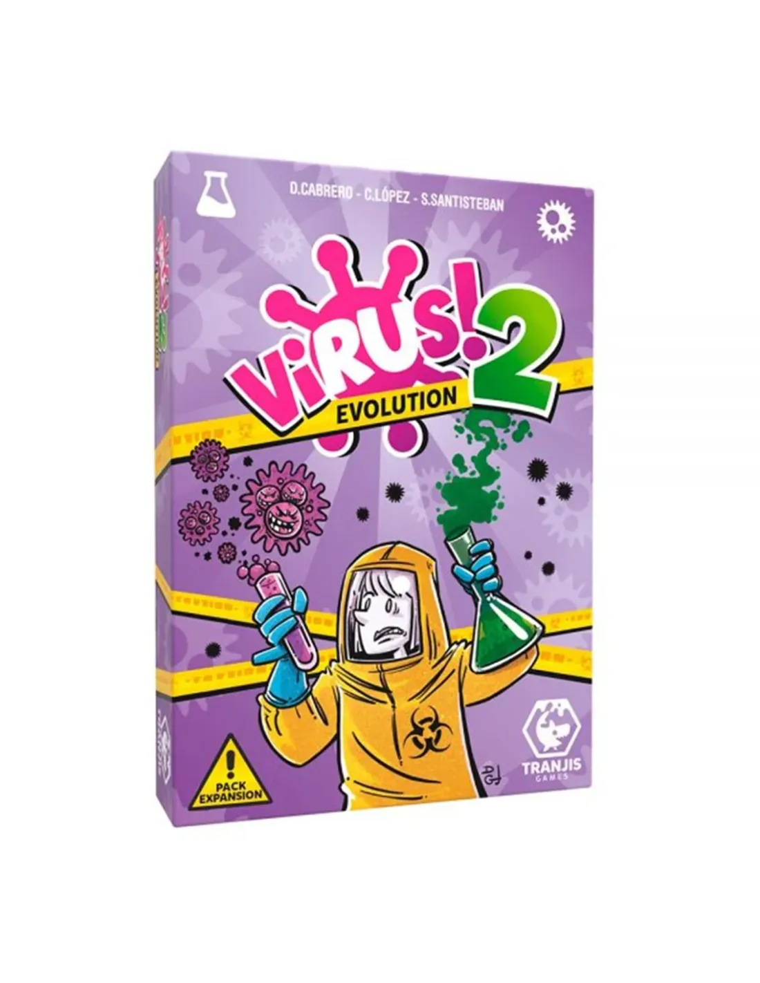 ¡Los Virus han evolucionado!Justo cuando los esfuerzos de nuestros médicos empezaban a dar susfrutos, los problemas se complican. Las muestras almacenadas en ellaboratorio para su estudio, revelan que los virus han mutado y se hanvuelto mucho más resistentes y agresivos.Toda la diversión de Virus! ahora duplicada con las nuevas cartas de laexpansión Virus 2! Evolution.Consigue cuatro órganos de cada color.Elimina los virus e inmuniza tus órganos para que no se puedan contagiar.Sabotea a tus rivales para ser la primera persona en tener los cuatroórganos sanos.¡Contágiate con esta expansión y diviértete en familia o con amigos!ADVERTENCIA: Virus! 2 Evolution es una expansión y se necesita Virus! parapoder jugar.Edades A partir de 8 añosNº personas De 2 a 6Tiempo de juego 20 minutos