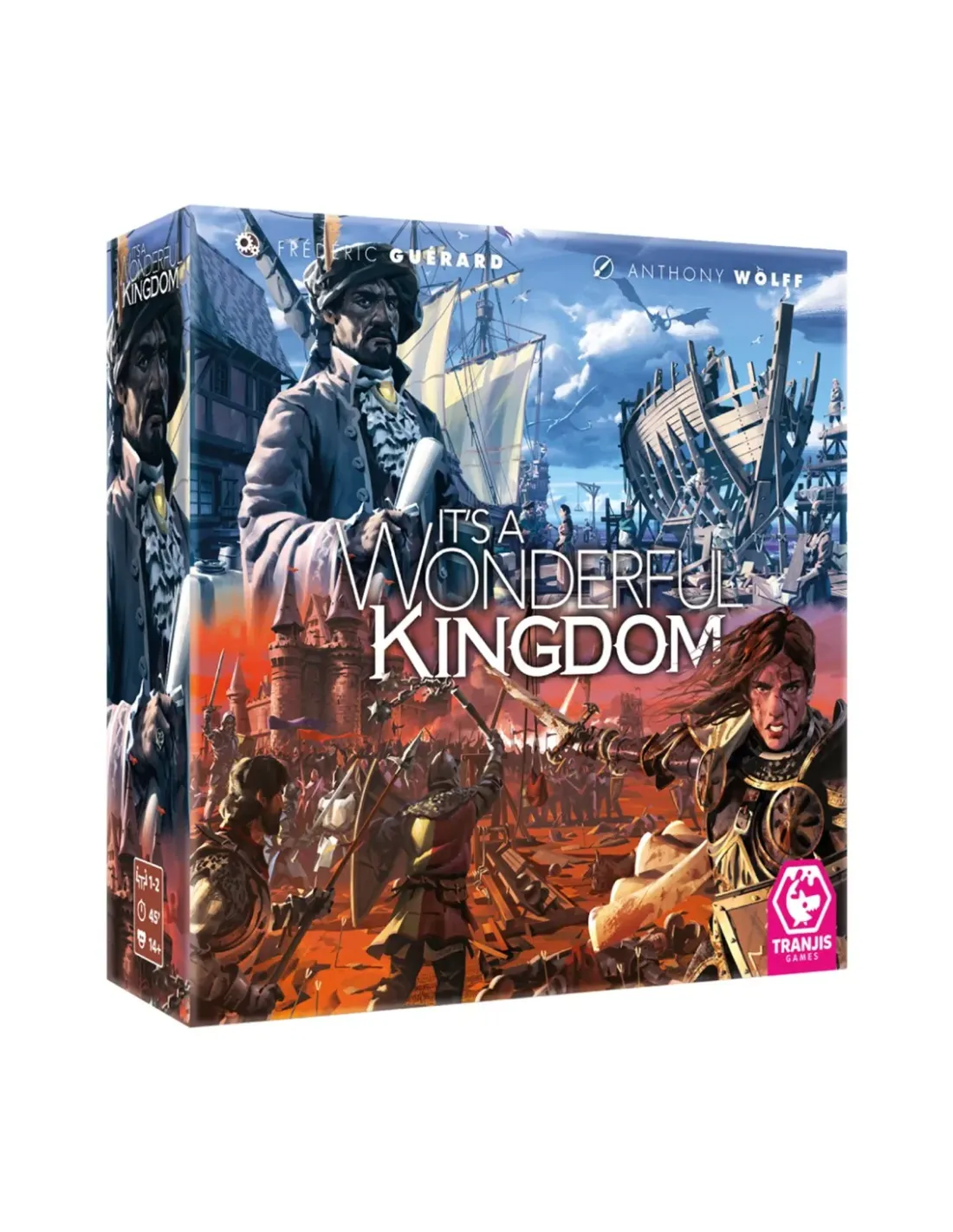 ¡Hazte con el reino y recupera el trono que te pertenece legítimamente!Domina el sistema de ofrendas y trampas para engañar a tu oponente y que elija las cartas como más te convenga a ti. ¡Desarrolla tu ducado mejor que tu rival y gobierna este maravilloso reino!Basado en la mecánica principal de Its a Wonderful World, pero con mecánicas y módulos adicionales.Its a Wonderful Kingdom es un juego con mecánica principal de draft en el que, a lo largo de cuatro rondas, las personas se repartirán cartas mediante un sistema de ofrendas. Consta de tres fases:Selección, Planificación y Producción. Cada persona deberá jugar de manera estratégica para conseguir aquellos recursos que le permitan construir un mejor ducado y deshacerse de las cartasnegativas que van a perjudicar su puntuación al final de la partida.El faroleo toma relevancia en la fase de selección.Consigue los recursos necesarios para construir un mejor ducado.Incluye tres módulos distintos para añadir rejugabilidad a las partidas.Its a Wonderful Kingdom es el juego ideal para jugar dos personas o en modo solitario. ¡A por el reino!