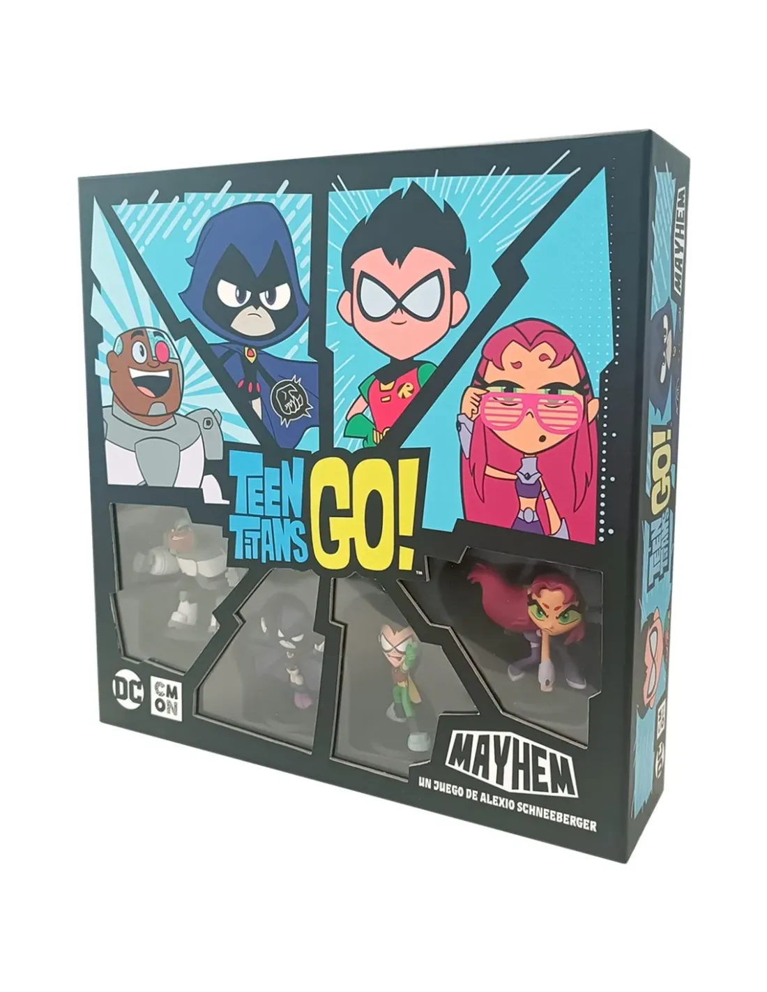Teen Titans GO! Mayhem es un juego de escaramuzas familiar para 2 a 4jugadores protagonizado por los populares personajes de la serie deanimación Teen Titans GO! En él, dos equipos libran batallas y completanmisiones para demostrar cuál es el mejor. Muévete por un tableropreparado al azar compuesto por ubicaciones memorables de la serie,derrota a monstruos, investiga pistas, come pizza y lucha contra los demásusando poderes fantásticos, capacidades especiales y los efectos únicosde las cartas Mayhem. Incluye varios modos de juego y reglas especiales.¡Diversión garantizada para toda la familia!CONTENIDO· 4 FIGURAS PINTADAS: ROBIN, CIBORG, STARFIRE Y RAVEN · 4 HOJAS DEPERSONAJE · 10 PIEZAS DE UBICACIÓN · 4 DADOS DE ACTIVACIÓN · 1 DADOMAYHEM · 4 ANILLAS PARA LAS PEANAS · 22 CARTAS MAYHEM · 12 CARTASGO! · 92 FICHAS · 1 REGLAMENTOTítulo Teen Titans GO! MayhemReferencia TTG001ESFecha de lanzamiento 02/12/2022Editorial CMONCategoría Juego de tableroColección The Animation CollectionIdioma EspañolEdad mínima recomendada 10 añosDuración 30'Número de jugadores 2 a 4EAN 8435407640764
