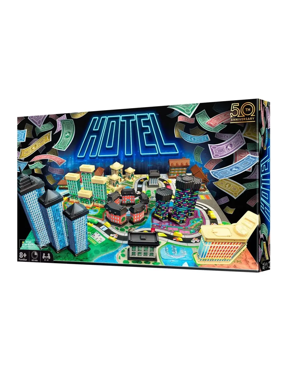 Desarrolla hoteles de lujo por todo el mundo, ¡y haz que tus rivales paguen por alojarse en ellos!Cuanto más construyas, ¡más dinero tendrás!Tienes lo necesario para hacerte con todo? O perderás toda tu fortuna?CONTENIDO1 tablero, 30 Edificios, 8 Zonas de recreo, 30 Entradas, 8 Títulos de propiedad, 100 billetes, 4 Coches, 2 dados, 1 reglamento.Título HotelReferencia OOBHOT01ESFecha de lanzamiento 05/04/2024Editorial Ooba GamesCategoría Juego de tableroColección HotelIdioma EspañolEdad mínima recomendada 8 añosDuración 40'Número de jugadores 2 a 4EAN 3558380116387