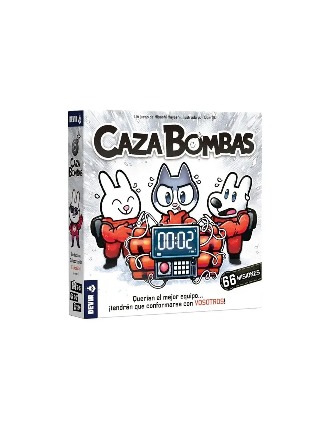 Características del Juego de Mesa Caza BombasEl juego de mesa Caza Bombas es una emocionante propuesta cooperativa diseñada para desafiar la lógica, la comunicación y los nervios del equipo. Ideal para grupos de 2 a 5 jugadores a partir de 12 años, este juego te pone en la piel de un equipo de artificieros que debe desactivar bombas en situaciones críticas, bajo presión y con información limitada. Cada partida es una nueva oportunidad para demostrar vuestra capacidad de deducción y trabajo en equipo.Desafíos cooperativos bajo tensiónEl corazón del juego reside en una mecánica de deducción cooperativa, donde cada jugador dispone de información parcial y debe comunicarla de forma eficaz al resto del equipo. Las decisiones se toman bajo una cuenta atrás que simula la tensión de una desactivación real, y cada error puede ser crítico.Mecánica principal: deducción cooperativaTurnos con información limitada y comunicación estratégicaProgresión de dificultad en cada misiónContenido rejugable y herramientas especialesCaza Bombas incluye 66 misiones distintas, cada una con nuevos retos y niveles de dificultad. Además, contarás con herramientas especiales que añaden variedad y profundidad a cada partida, fomentando la rejugabilidad y la cooperación constante.66 misiones con escenarios variadosDuración aproximada por partida: 30 minutosIncluye herramientas para resolver los acertijosUna experiencia intensa para jugar en grupoPerfecto para reuniones con amigos o noches de juego, este título combina tensión, estrategia y coordinación. Su ambientación realista y el ritmo marcado por la cuenta atrás crean una experiencia inmersiva que engancha desde la primera partida.Recomendado a partir de 12 añosDe 2 a 5 jugadoresIdeal para sesiones de juego cooperativo y familiarOtras especificacionesTemática: desactivación de bombas en situaciones críticasAmbiente dinámico con toma de decisiones bajo presión