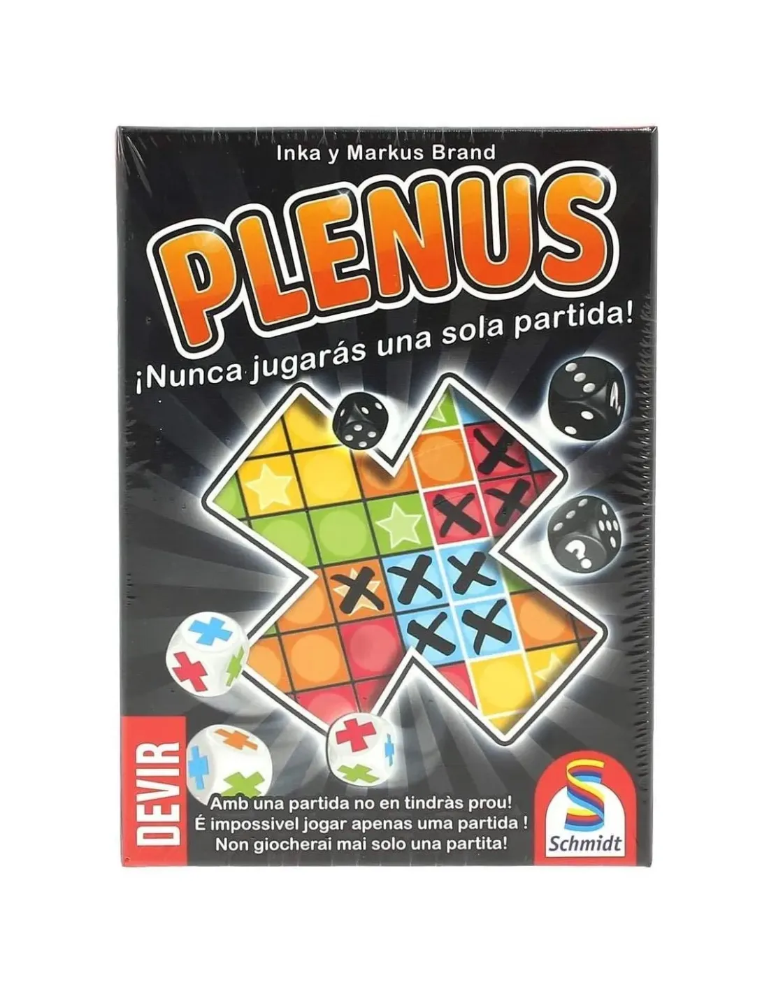Tira los dados, escoge los que prefieras, marca las casillas y consigue elmáximo número de puntos. Así funciona Plenus, el nuevo juego de Inka yMarkus Brand de reglas sencillas y partidas trepidantes. De 1 a 6 jugadorestendrán que intentar marcar el máximo número de casillas en su panelintentando ser los primeros en llenar las columnas y los espacios decolores de su papel. Pero, ¡cuidado con dejarte estrellas por el camino operderás puntos a final de partida!1. De los autores premiados Inka y Marcus Brand.2. Una mecánica moderna en un juego accesible para todos los jugadores.3. Mucha rejugabilidadNÚMERO DE JUGADORES Mín:1 Máx:6TIEMPO DE JUEGO 20 min.EDAD RECOMENDADA 8 AÑOSLANGUAGE Castellano, catalán, italiano y portuguésFECHA DE LANZAMIENTO 29/06/2018