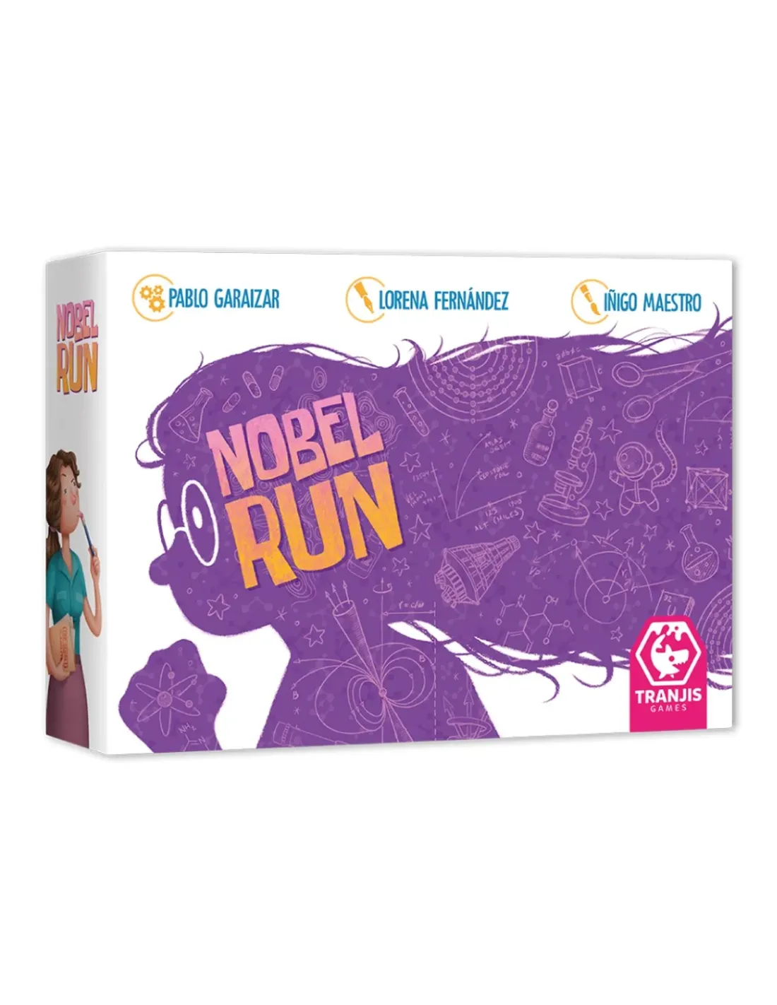 ¡La carrera científica es dura pero apasionante!En Nobel Run gestionarás tu propio equipo de investigación para ganar elPremio Nobel. Para ello, deberás conseguir financiación a través deproyectos, contratar personal y publicar artículos en revistas científicas.Inventoras y científicas de primer nivel te ayudarán en tu objetivo ¿Seráscapaz de lograrlo antes que el resto?Nobel Run es un juego de construcción de mazos en el que debes construirtu propia carrera científica en pos del Premio Nobel. El objetivo de la partidaes ser la primera persona en conseguir reunir 20 puntos de prestigio con suequipo de investigación.Gestiona tu propio equipo de científicas e inventoras.Usa los recursos de las cartas de tu mano para conseguir una o variascartas de la reserva.Publica una de las cartas de tu mano en tu Currículum Vitae.¡Inicia la carrera por el Premio Nobel a través de algunas de las figurasfemeninas más importantes de la historia científica!Edades A partir de 10 añosNº personas De 1 a 4Tiempo de juego 30 minutos