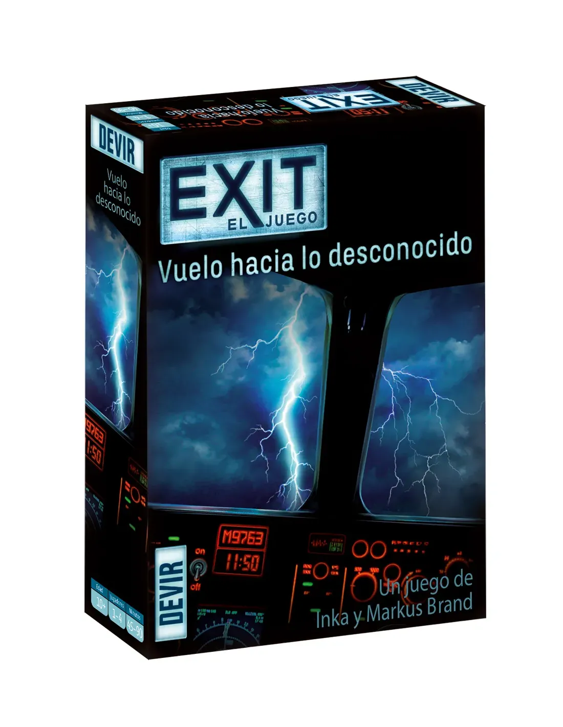Características del juego de mesa Devir EXIT 15: Vuelo hacia lo desconocidoEXIT 15: Vuelo hacia lo desconocido es una entrega de la galardonada saga EXIT de Devir, una serie de juegos de mesa cooperativos inspirados en las populares escape rooms. Esta edición propone una experiencia única donde un apacible vuelo comercial se transforma en una misión por resolver misterios a contrarreloj. Diseñado para disfrutar en solitario o en grupo, es perfecto para quienes buscan retos mentales intensos y narrativas inmersivas.Escape room en formato de mesaEXIT es una serie de juegos que traslada la emoción de una sala de escape al salón de casa. Cada caja presenta una historia distinta, y en Vuelo hacia lo desconocido, los jugadores deberán resolver una serie de enigmas durante un viaje que cambia radicalmente su curso.Mecánica cooperativa, ideal para grupos de hasta 4 personasIncluye manual, decodificador y cartas con pruebas y pistasUna sola partida intensa, con narrativa de suspensoUna experiencia inmersiva e irrepetibleEl juego presenta puzzles ingeniosos, cartas enigmáticas y pistas opcionales para avanzar si el grupo se queda bloqueado. El decodificador guiará la partida validando las soluciones y llevando al siguiente reto. Todo está pensado para una sesión única y memorable.Duración aproximada: 90 minutosEdad recomendada: a partir de 10 añosRejugabilidad limitada, pero con una historia cerrada muy satisfactoriaDiseñado para mentes inquietasEXIT 15 es ideal para quienes disfrutan de los retos lógicos, la cooperación en grupo y las historias con giros inesperados. Una excelente opción para pasar una tarde diferente, ya sea en familia o entre amigos.Formato compacto y autoconclusivoJuego 100% en españolDesarrolla pensamiento lateral y trabajo en equipoOtras especificacionesNúmero de jugadores: de 1 a 4Idioma: EspañolTipo: Juego de tablero