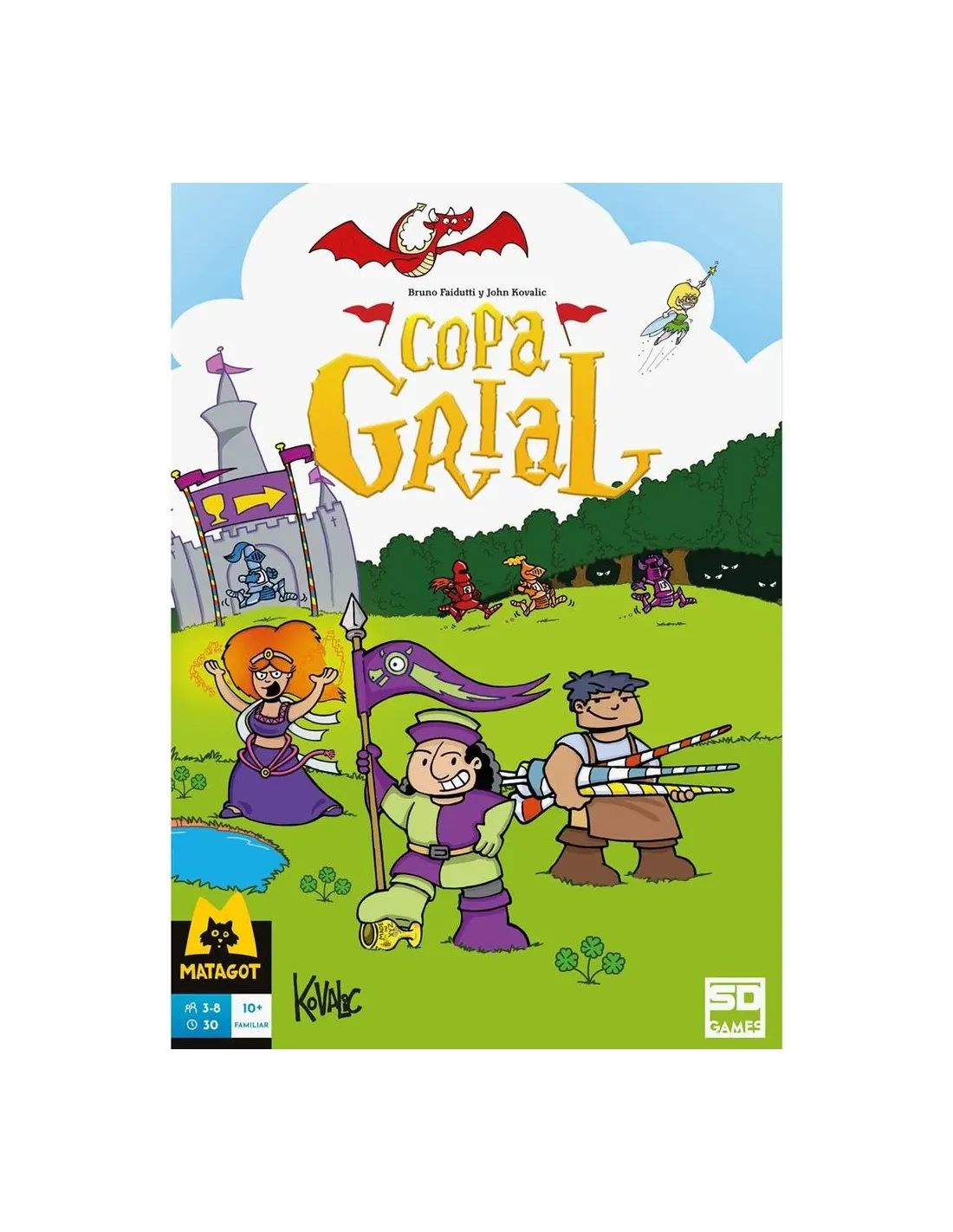 Características de la JUEGO DE MESA COPA GRIALCopa Grial es un emocionante juego de mesa de temática medieval donde los jugadores encarnan caballeros de Camelot en la legendaria búsqueda del Santo Grial. Combina mecánicas de carreras, roles ocultos y faroleo estratégico para ofrecer partidas rápidas, dinámicas y llenas de interacción. Ideal para sesiones familiares o entre amigos que disfrutan de juegos accesibles con profundidad táctica.Temática y MecánicasEn Copa Grial, cada jugador asume el papel de un caballero con aliados secretos, utilizando sus habilidades para avanzar, obstaculizar a sus oponentes y adaptarse a los imprevistos que surgen durante la partida. La combinación de anticipación, engaño y toma de decisiones hace que cada partida sea única.Género: Carrera y roles ocultosAmbientación: Edad Media y búsqueda del Santo GrialInteracción: Alta entre jugadoresDinámica de JuegoCada turno, los jugadores seleccionan un rol oculto que define sus acciones disponibles, aprovechando las ventajas de su aliado y creando situaciones estratégicas. El objetivo es ser el caballero más rápido, más astuto y más inteligente para obtener el Grial antes que los demás.Especificaciones TécnicasEdad recomendada: A partir de 10 añosJugadores: De 3 a 8 participantesDuración de la partida: Aproximadamente 30 minutosAutores: Bruno Faidutti y John KovalicIdioma: Español y catalánDimensiones del producto: 21 × 27 × 6 cm (formato caja)Referencia: SDGCOPGRI01EAN: 8435450254758Componentes IncluidosEl juego presenta componentes de calidad que facilitan la inmersión y aseguran una experiencia divertida desde la primera partida:9 cartas de aliado18 fichas de trébol1 figura de dragón8 caballeros para los jugadores8 cartas de ayuda1 dado de aldea12 fichas de lanza1 sello de lacre para el jugador inicial2 tableros de misión + 1 tablero principal1 reglamento¿Por Qué Elegir Copa Grial?Con partidas de corta duración, un estilo visual atractivo y mecánicas que favorecen tanto la diversión como la estrategia, Copa Grial es perfecto para grupos de amigos, familias o sesiones lúdicas donde se busque un equilibrio entre competición y entretenimiento accesible para jugadores de distintas edades.