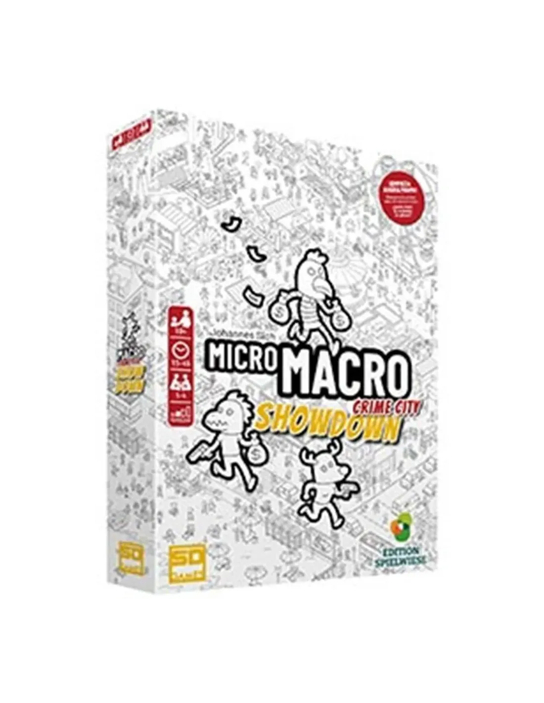 Características de MicroMacro: Crime City - ShowdownMicroMacro: Showdown es la cuarta y última entrega de la serie MicroMacro: Crime City, un juego cooperativo de investigación criminal donde deberás agudizar la vista y aplicar tu lógica deductiva. Ambientado en una ciudad plagada de misterios y delitos, este desafiante juego invita a los jugadores a resolver 16 nuevos casos sin necesidad de haber jugado entregas anteriores. Ideal para grupos de hasta 4 personas o para detectives en solitario, ofrece una experiencia inmersiva y rejugable.Un nuevo mapa, nuevos casos, misma esencia detectivescaEn esta entrega, los jugadores se sumergen en un nuevo distrito de Crime City, repleto de pistas visuales y escenarios sospechosos. La misión: descubrir qué ha pasado, cómo ocurrió y quién fue el culpable. Cada caso exige atención al detalle y habilidades deductivas para reconstruir los hechos.Incluye un mapa exclusivo de 75 x 110 cm16 nuevos casos por resolver, con niveles progresivos de dificultadCompatible con lupa incluida para no perder detalle algunoJuego cooperativo para todas las edades (a partir de 10 años)MicroMacro: Showdown es un juego independiente y autoconclusivo, perfecto tanto para veteranos de la saga como para quienes se inician en el universo Crime City. Su formato compacto y rejugabilidad lo hacen ideal para sesiones cortas o maratones de investigación en grupo.Edad recomendada: a partir de 10 añosDuración por partida: entre 15 y 45 minutos por casoNúmero de jugadores: de 1 a 4Contenido de la cajaTodo lo necesario para empezar a jugar viene incluido en esta edición:1 mapa de la ciudad (75 x 110 cm)1 libro de reglas16 sobres de caso120 cartas de caso1 lupaOtras especificacionesTipo: Juego de mesa cooperativoSerie: MicroMacro: Crime CityIdioma: EspañolEditorial: Pegasus SpieleEdición: Independiente, no requiere juegos anteriores