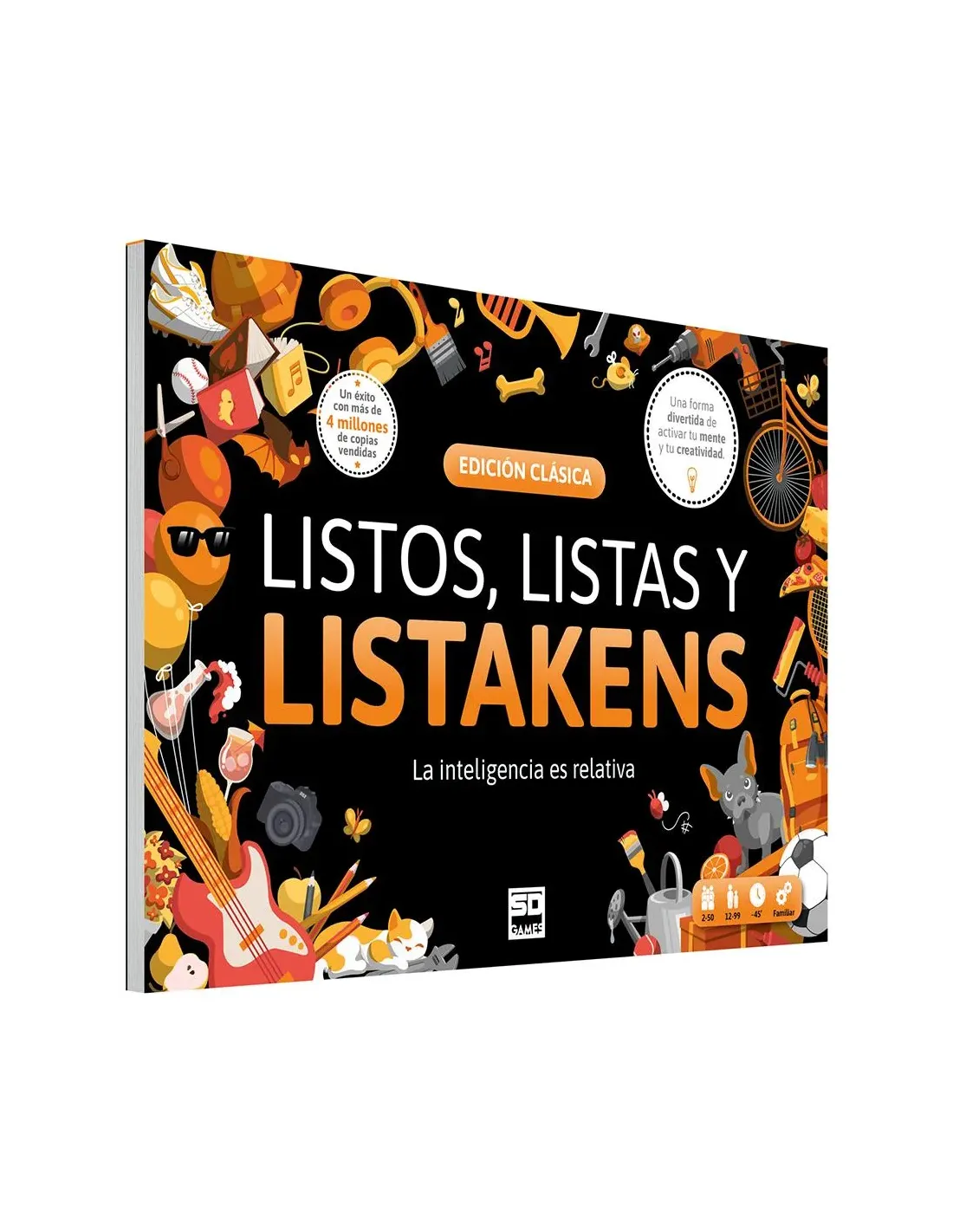 Características de Listos, Listas y Listakens Edición ClásicaListos, Listas y Listakens Edición Clásica es un juego de mesa dinámico, ideal para reuniones familiares, fiestas o sesiones de juego con amigos. Su propuesta de categorías variadas, ritmo rápido y partidas llenas de risas lo convierte en una opción perfecta para activar la mente y disfrutar en grupo. Diseñado para jugadores a partir de 12 años, puede adaptarse a grupos grandes, lo que lo hace especialmente versátil.32 categorías para poner a prueba tu agilidad mentalEl juego desafía tu vocabulario y rapidez con 32 categorías temáticas distintas, desde nombres y profesiones hasta objetos o lugares. Cada ronda es una oportunidad para destacar con respuestas originales y sumar puntos.Dinámica tipo Scattergories con un giro propioRondas rápidas que mantienen la atención constanteCasillas especiales Listakens que duplican tu puntuaciónFácil de jugar en solo 3 pasosAprender a jugar es sencillo, lo que permite comenzar en minutos. Cada partida mantiene el ritmo y promueve la creatividad bajo presión.Elige una letra: Alguien grita "¡STOP!" para fijar la letra de la rondaCompleta la fila: Escribe una palabra por categoría que comience con esa letraSuma puntos: Gana quien obtenga la mayor puntuación totalIdeal para grupos grandesUna de sus mayores ventajas es su flexibilidad: pueden jugar desde 2 hasta 50 personas, lo que lo hace ideal para todo tipo de eventos. Además, cada partida tiene una duración aproximada de 45 minutos, perfecta para mantener la energía del grupo sin volverse repetitiva.Edad recomendada: +12 añosJugadores: de 2 a 50Duración: aprox. 45 minutos