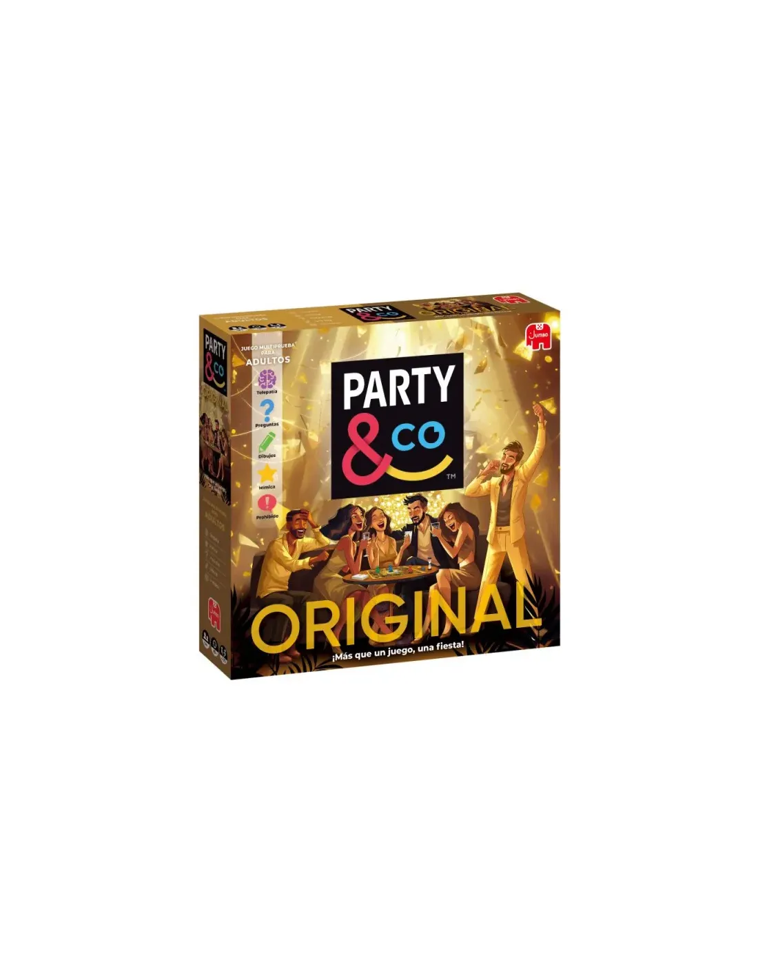 ¡Party & Co cumple 30 años! y lo queremos celebrar con esta nuevaedición de Party & Co Original, el auténtico juego multi-prueba.En esta versión encontraremos las categorías de siempre: lapregunta, a dibujar, mímica y sonidos, palabras prohibidas y un, dos,tres. Todas ellas con el contenido actualizado.El objetivo del juego es intentar superar correctamente una pruebaen cada una de las 5 casillas principales para poder puntuar yfinalmente dirigirse a la casilla central para la prueba final.Party & Co cumple 30 años siendo el auténtico juego multi-prueba.Preguntas y respuestas, ¡para partirse de risa!Estimula la sociabilidad y el juego en equipo.La caja incluye:Tablero de juego, 400 tarjetas con 2.000 pruebas.4 peones-gramófono, 20 discos de puntuación (de 5 categoríasdiferentes), 1 reloj de arena, 1 libreta, 1 lápiz, 1 dado y dispensador detarjetas.Instrucciones de juego.
