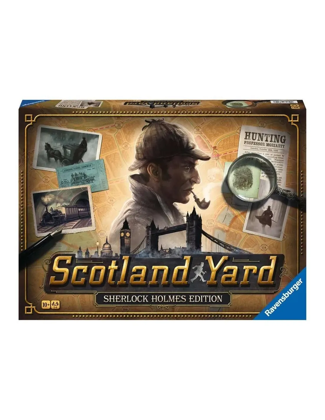 Características del juego de mesa Scotland Yard Sherlock HolmesScotland Yard Sherlock Holmes Edition es un emocionante juego de mesa de investigación y estrategia en el que los jugadores deberán unir fuerzas para capturar al temido profesor Moriarty. Inspirado en el clásico galardonado Scotland Yard, esta versión ambientada en el universo de Sherlock Holmes propone una intensa persecución por las calles de Londres donde la deducción, la cooperación y la estrategia serán clave para ganar la partida. Diseñado para jugadores a partir de 10 años, ofrece partidas llenas de tensión y misterio de aproximadamente 45 a 60 minutos.Una persecución llena de misterio en LondresEn esta edición especial, los jugadores asumen el papel de los legendarios personajes del universo Sherlock Holmes, como Sherlock Holmes, Mycroft, el Dr. Watson, el inspector Lestrade o Irene Adler. Juntos deberán rastrear al profesor Moriarty, que se mueve de forma sigilosa por el mapa utilizando distintos medios para ocultar su paradero.Juego de detectives ambientado en el universo de Sherlock HolmesLos jugadores cooperan para capturar al profesor MoriartyPersecución estratégica por el mapa de LondresJuego cooperativo de deducción y estrategiaMoriarty puede moverse rápidamente y borrar sus huellas, incluso utilizando su globo aerostático para escapar de los detectives. Por ello, los jugadores tendrán que utilizar su razonamiento deductivo y coordinar sus movimientos para anticiparse a sus planes. Cada personaje aporta habilidades diferentes, lo que fomenta el trabajo en equipo y la planificación.Para 2 a 6 jugadoresEdad recomendada: 10 a 99 añosDuración aproximada de la partida: 45 ? 60 minutosEdición clásica con producción sostenibleEl juego se presenta en una caja resistente e incluye un tablero de gran tamaño que representa las calles de Londres, permitiendo una experiencia de juego clara y envolvente. Además, cuenta con certificación FSC Mix 70%, lo que garantiza el uso responsable de materiales procedentes de bosques gestionados de forma sostenible.Tamaño de la caja: 5,50 x 37,30 x 27,30 cmTamaño del tablero: 50,00 x 66,40 x 0,30 cmCertificación FSC Mix 70%Otras especificacionesNúmero de artículo: 27344EAN: 4005556273447Género: Juego de detectives