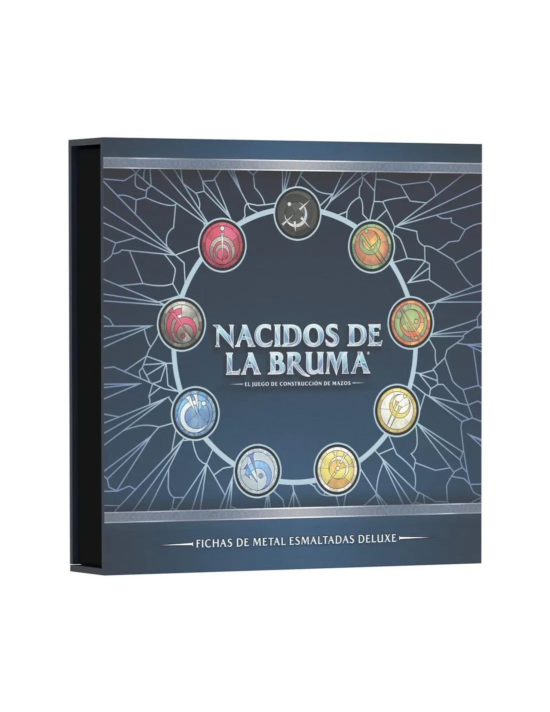 Características del Juego de Mesa Nacidos de la Bruma Fichas de MetalEl set de fichas de metal Nacidos de la Bruma es el complemento perfecto para mejorar la experiencia de juego en Nacidos de la bruma: el juego de construcción de mazos. Este conjunto incluye fichas metálicas esmaltadas que representan los 9 metales del universo creado por Brandon Sanderson, aportando una sensación más inmersiva y una presentación de gran calidad en cada partida. Además, se presenta en un estuche exclusivo con cierre imantado, ideal tanto para jugar como para coleccionar.Fichas metálicas esmaltadas de alta calidadEste conjunto sustituye las fichas estándar del juego por fichas de metal esmaltadas, ofreciendo una experiencia táctil superior y un acabado más premium en la mesa. Cada ficha representa uno de los metales alománticos del universo de la saga.Fichas metálicas esmaltadasRepresentación de los 9 metales del juegoMayor durabilidad y sensación premiumIncluye los nueve metales del universo Nacidos de la BrumaEl set incorpora fichas correspondientes a los nueve metales utilizados en el juego, fundamentales dentro de la mecánica y la ambientación de la saga. Esto permite mantener la fidelidad temática mientras se mejora la presentación del juego.HierroAceroEstañoPeltreAtiumBronceCobreLatónCincEstuche exclusivo con cierre imantadoLas fichas se guardan en un estuche especial con cierre magnético, diseñado para protegerlas y facilitar su transporte. Este formato también lo convierte en un objeto ideal para coleccionistas y fans de la obra de Brandon Sanderson.Estuche exclusivo de almacenamientoCierre imantado seguroIdeal para coleccionistasPartidas rápidas y dinámicasEste accesorio está pensado para utilizarse con el juego de construcción de mazos Nacidos de la bruma, cuyas partidas están diseñadas para ser ágiles y dinámicas, permitiendo disfrutar de la estrategia en sesiones cortas.Duración aproximada de la partida: 15 minutosAccesorio oficial para Nacidos de la bruma: juego de construcción de mazos