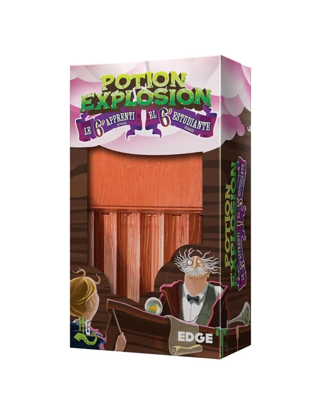 Características del Juego de Mesa Potion Explosion: El Sexto EstudiantePotion Explosion: El Sexto Estudiante es una expansión que amplía la experiencia del popular juego de mesa, permitiendo partidas más dinámicas y con mayor número de jugadores. Diseñado para quienes buscan más variedad, estrategia y rejugabilidad, introduce nuevos elementos, mecánicas y componentes que enriquecen cada partida en la Academia de Magia.Expansión para hasta 6 jugadoresEsta ampliación está pensada para grupos más grandes, permitiendo disfrutar del juego con hasta 5 o 6 jugadores. Ideal para reuniones y partidas en familia o con amigos, donde la interacción y la competición se intensifican.Modo de juego ampliado para 5-6 jugadoresMayor interacción entre participantesPartidas más dinámicas y competitivasNuevas mecánicas y dispensadoresEl juego introduce una dinámica innovadora con el uso de dos dispensadores de ingredientes, lo que añade un nuevo nivel de estrategia. Los jugadores deberán planificar cuidadosamente sus movimientos para optimizar sus combinaciones y aprovechar cada turno.Uso de 2 dispensadores durante la partidaMecánica de intercambio de dispensadoresMayor profundidad estratégicaIngredientes y pociones inéditasSe incorporan nuevas pociones y un ingrediente comodín, las hojas de mandrágora, que aportan variedad y nuevas posibilidades tácticas. Estos elementos amplían las combinaciones disponibles y enriquecen la experiencia de juego.30 canicas de hoja de mandrágoraNuevas pociones para prepararIngrediente comodín con mecánicas propiasContenido completo para ampliar el juegoIncluye todos los componentes necesarios para integrar la expansión con el juego base, manteniendo la calidad y coherencia del universo Potion Explosion.1 dispensador de plástico16 piezas de Poción y 2 tableros de pupitre8 fichas de maestría y 9 fichas de ayuda del profesor30 canicas de hoja de mandrágora1 campana y reglamentoInformación técnicaTítulo: El Sexto EstudianteEditorial: Edge EntertainmentColección: Potion ExplosionCategoría: Juego de tableroIdioma: EspañolEdad recomendada: Desde 8 añosDuración de partida: 30-45 minutosFecha de lanzamiento: 20/05/2022