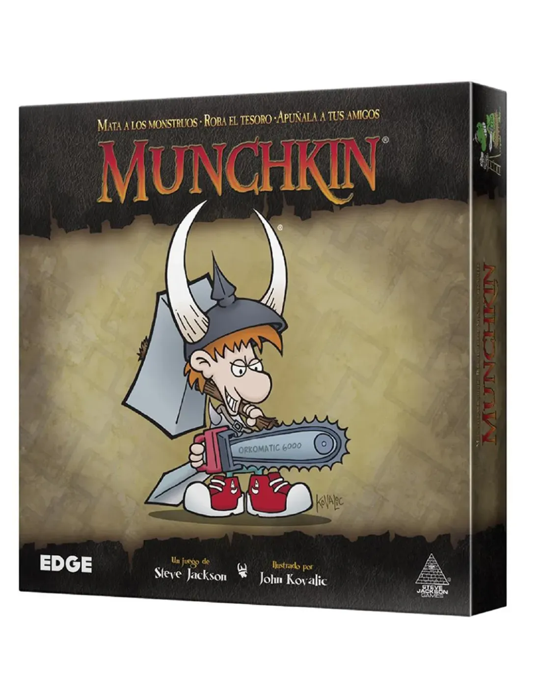 Características del juego de mesa Asmodee MunchkinMunchkin es un divertido y caótico juego de cartas ambientado en mazmorras donde el objetivo es claro: derrota monstruos, consigue tesoros y supera a tus amigos antes de que ellos lo hagan contigo. Diseñado por Steve Jackson e ilustrado por John Kovalic, este título se ha convertido en un clásico para los amantes del humor, la fantasía y los juegos de mesa rápidos y competitivos. En cada partida los jugadores exploran una mazmorra llena de criaturas absurdas, equipamiento mágico y situaciones imprevisibles. A lo largo del juego podrás mejorar tu personaje, equiparte con objetos cada vez más disparatados y usar todo tipo de artimañas para ser el primero en alcanzar la victoria.Un juego de cartas rápido, caótico y muy divertidoMunchkin está diseñado para ofrecer partidas dinámicas y llenas de humor. Los jugadores deben abrir puertas, enfrentarse a monstruos y utilizar cartas de equipo o habilidades para ganar combates y subir de nivel. Pero cuidado: tus rivales también pueden intervenir para complicarte la vida en el peor momento.Juego de cartas con mecánicas sencillas y partidas rápidasHumor y parodias del clásico rol de mazmorrasInteracción constante entre los jugadoresObjetos y monstruos tan absurdos como divertidosUno de los mayores atractivos del juego es su gran variedad de cartas con situaciones y objetos disparatados. Podrás equiparte con artefactos extravagantes y enfrentarte a enemigos ridículos mientras intentas avanzar más rápido que el resto de jugadores.Equipamiento mágico como el Yelmo Cornudo o el Báculo de NapalmMonstruos caricaturescos y situaciones imprevisiblesEstilo visual cómico con ilustraciones de John KovalicPerfecto para jugar en grupoMunchkin está pensado para disfrutarse en compañía. Con reglas fáciles de aprender y un enfoque competitivo lleno de traiciones y risas, es una opción ideal para reuniones con amigos o sesiones de juegos de mesa.Número de jugadores: 3 a 6Edad recomendada: a partir de 10 añosPartidas rápidas y accesiblesContenido del juegoLa caja incluye todo lo necesario para comenzar a jugar y vivir una auténtica aventura de mazmorras con un toque de humor irreverente.168 cartas1 dadoOtras especificacionesTítulo: MunchkinEditorial: Edge EntertainmentColección: MunchkinFecha de lanzamiento: 31/07/2020Categoría: Juego de cartasIdioma: Español