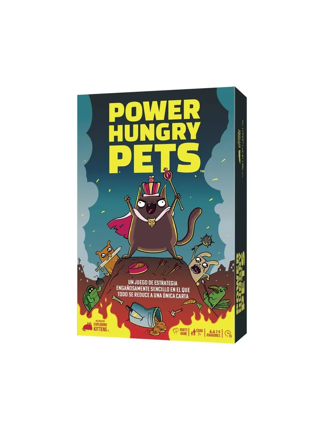 Características del Juego de Mesa Power Hungry PetsEl juego de cartas Power Hungry Pets es una propuesta divertida y accesible pensada para jugadores a partir de 7 años, donde la estrategia y la toma de decisiones rápidas son clave. Con partidas dinámicas de apenas 15 minutos, este título de Exploding Kittens es ideal para disfrutar en familia o con amigos, combinando mecánicas sencillas con un toque competitivo y sorprendente.Mecánica sencilla con estrategia ocultaEn Power Hungry Pets, cada jugador dispone de dos cartas, pero solo podrá conservar una. La clave está en elegir inteligentemente cuál mantener y cuál usar para afectar a tus rivales. A pesar de su aparente simplicidad, el juego ofrece decisiones tácticas que pueden cambiar el rumbo de la partida en segundos.Cada carta incluye un número y un efecto especialElección estratégica entre dos cartas en cada turnoInteracción directa para eliminar a otros jugadoresPartidas rápidas y muy rejugablesDiseñado para partidas ágiles, este juego permite disfrutar de múltiples rondas en poco tiempo. Su formato compacto y reglas fáciles de aprender lo convierten en una opción perfecta tanto para jugadores ocasionales como para quienes buscan un juego ligero pero entretenido.Duración aproximada de 15 minutosDe 2 a 6 jugadoresIdeal para familias y grupos de amigosContenido compacto y listo para jugarPower Hungry Pets incluye todo lo necesario para empezar a jugar desde el primer momento. Su diseño práctico facilita el transporte y almacenamiento, siendo una excelente opción para llevar a cualquier reunión.21 cartas de juego7 fichas1 reglamento incluidoInformación adicional del productoTítulo: Power Hungry PetsEditorial: Exploding KittensFecha de lanzamiento: 15/03/2024Categoría: Juego de cartasIdioma: EspañolEdad recomendada: 7 años o más