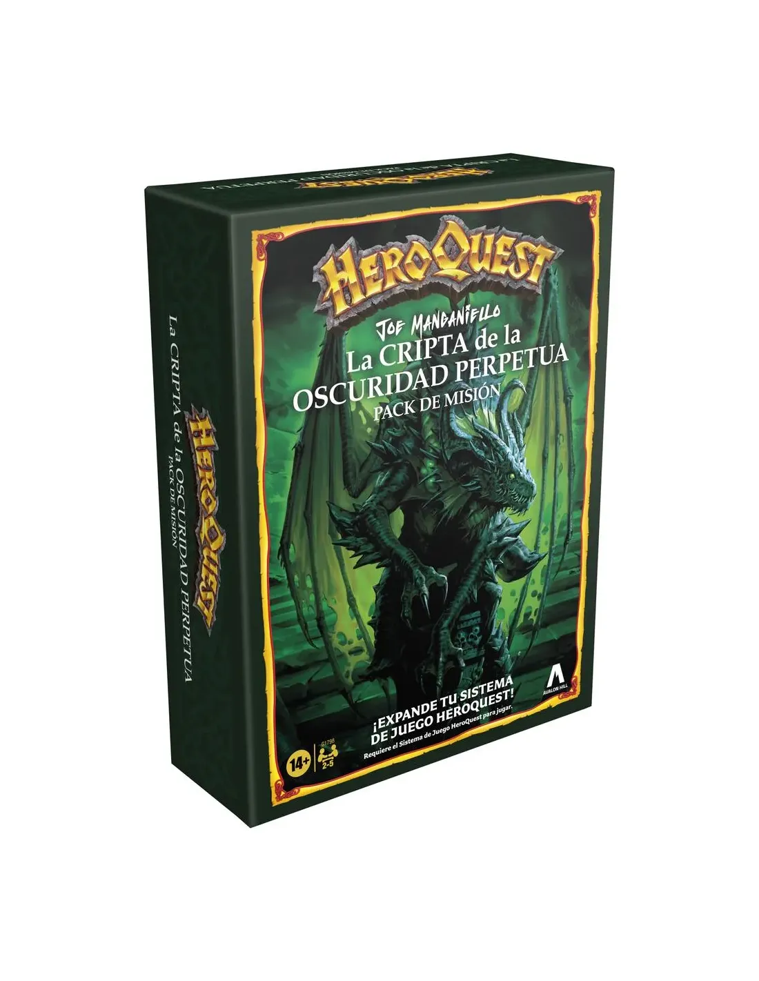 -NOMBRE DEL PRODUCTOHeroQuest La Cripta de la Oscuridad Perpetua - Pack de Misión Premium-CONTENIDO DEL PACK10 misiones diseñadas por Joe Manganiello1 miniatura metálica negra del dragón8 dados negros1 paquete de hojas de personaje20 cartas decoradas2 hojas de fichas de cartón-EDAD RECOMENDADAA partir de 14 años-NÚMERO DE JUGADORESDe 2 a 5 jugadores-REQUISITOSRequiere el sistema de juego HeroQuest (se vende por separado)-CARACTERÍSTICAS PRINCIPALESJuego de estrategia y aventuraPermite crear misiones e historias personalizadasRejugabilidad altaIdeal para noches de juegos de mesa en grupoÉpica batalla entre el bien y el mal-TRAMA DEL JUEGOEmprende la búsqueda de la cripta perdida para salvar a tu pueblo de las fuerzas del TerrorDescubre el verdadero poder oculto bajo el reinoLos secuaces de Zargon amenazan tu hogarViaje subterráneo en búsqueda de un antiguo y poderoso artefactoEvita que Zargon se apodere del tesoroTú eres la única esperanza de tu pueblo