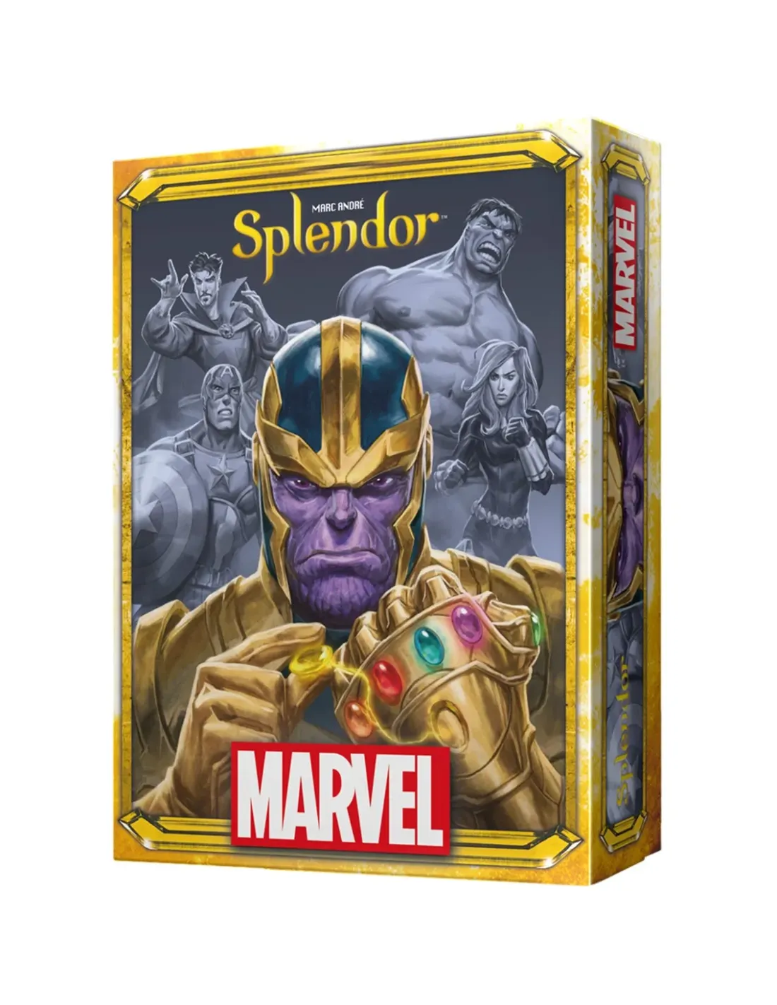 Características del Juego de Mesa Asmodee Splendor Marvel PEGI 10Splendor Marvel es una emocionante versión del popular juego de estrategia ambientada en el universo de Marvel. En este juego de mesa deberás reunir a un equipo de superhéroes y villanos mientras compites por obtener las valiosas Gemas del Infinito. Diseñado para partidas dinámicas y estratégicas, es ideal para jugadores que disfrutan planificando cada movimiento para conseguir ventaja y evitar que Thanos domine el universo.Recluta héroes y villanos del universo MarvelUtiliza el poder de las Gemas del Infinito para reclutar personajes icónicos del universo Marvel. Cada carta proporciona puntos de Infinito y bonificaciones que te ayudarán a conseguir héroes cada vez más poderosos. La estrategia consistirá en construir el mejor equipo posible mientras gestionas tus recursos para adelantarte a tus rivales.Sistema de reclutamiento basado en cartasBonificaciones que facilitan obtener personajes más poderososObtén puntos de Infinito para avanzar hacia la victoriaCompite por el Guantelete del InfinitoEl objetivo final es reunir suficientes personajes y puntos de Infinito para reclamar el Guantelete del Infinito. Durante la partida también podrás adquirir lugares emblemáticos y activar la pieza de ¡Vengadores, reuníos!, lo que añade nuevas opciones estratégicas y hace que cada partida sea diferente.Condición de victoria basada en el Guantelete del InfinitoLugares especiales que aportan ventajas estratégicasMecánica inspirada en el clásico SplendorContenido del juegoEste juego incluye todos los componentes necesarios para disfrutar de partidas completas con amigos o familia. Su diseño combina ilustraciones del universo Marvel con mecánicas accesibles, lo que lo convierte en una excelente opción para jugadores a partir de 10 años.39 fichas de Gema del Infinito90 cartas5 fichas de S.H.I.E.L.D.4 piezas de Lugar1 pieza de Guantelete del Infinito1 pieza de ¡Vengadores, reuníos!1 libro de reglasOtras especificacionesTítulo: Splendor MarvelFecha de lanzamiento: 22/01/2021Editorial: Space CowboysCategoría: Juego de tableroColección: SplendorIdioma: EspañolEdad mínima recomendada: 10 añosNúmero de jugadores: 2 a 4