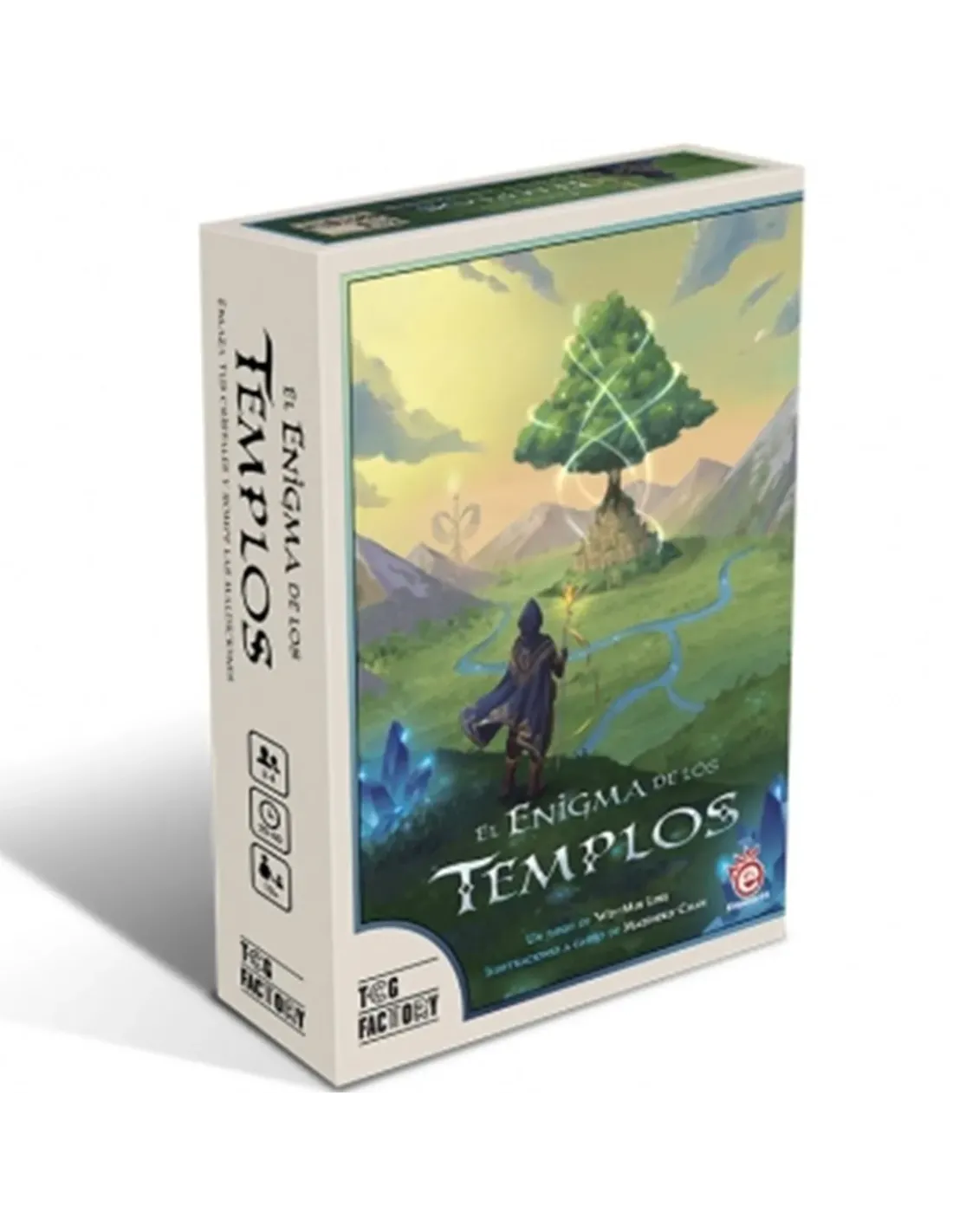 Originalmente conocido bajo el título de Mystery of the Temples, esun pequeño juego de estilo eurogame y mecánicas abstractas quemezcla control de áreas con colección de lotes y programación demovimientos. El Enigma de los Templos es un juego preparado para2 a 4 jugadores a partir de 10 años de edad con partidas que duranen torno a media hora.De reglas sencillas, plantea la suficiente profundidad como para seratractivo para los jugadores más veteranos.Misteriosos y enigmáticos templos aguardan la llegada de aquellosaventureros que se atrevan a explorarlos. Conviértete en unhechicero de gran poder y ábrete camino a través de sus murospara recuperar las runas arcanas que descansan tras ellos.Para lograrlo, antes tendrás querecolectar los cristales adecuados y fusionarlos en el ordencorrecto para romper las maldiciones que los protegen. ¡Lánzate ala aventura!Componentes:5 cartas de templo10 cartas de páramo20 cartas de runa6 cartas de objetivo4 paneles mágicos60 cristales de colores4 meeples de hericheros24 marcadores1 tablero de puntuación
