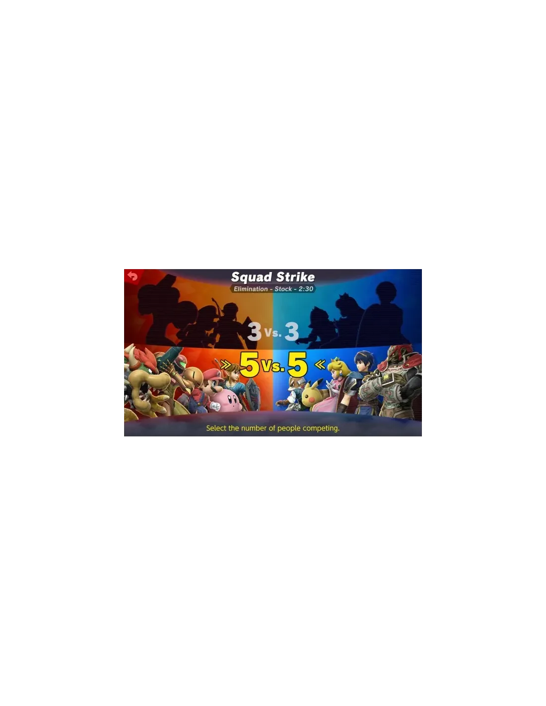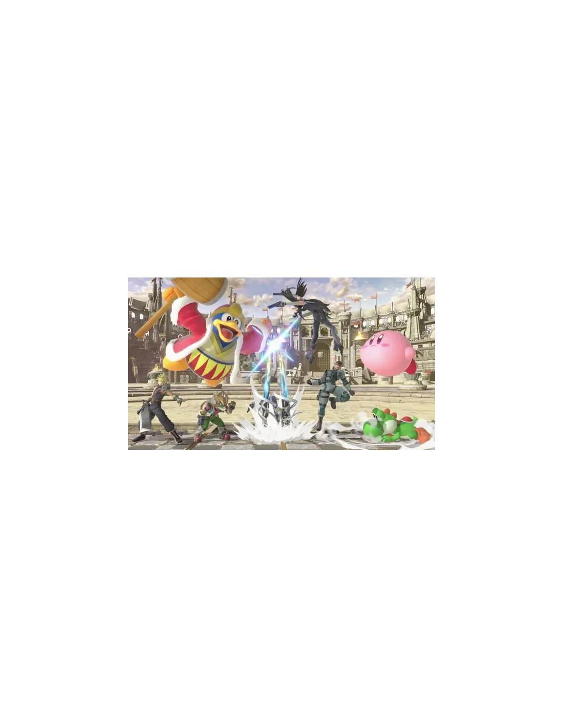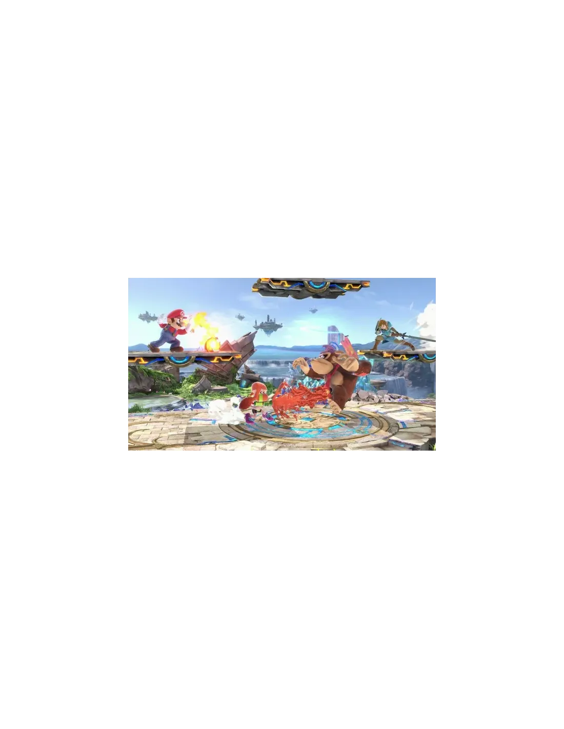 Nuevos luchadores, como los inkling de la serie Splatoon, Ridley de la serie Metroid, Simon Belmont de Castlevania y Canela de Animal Crossing, hacen su debut en Super Smash Bros. junto a todos los personajes de las entregas anteriores. ¡Todos! Pásalo bomba tratando de lanzar a los rivales del escenario en el juego de acción definitivo. Un combate más ágil, nuevos objetos, nuevos ataques, nuevas opciones defensivas, técnicas y otras muchas sorpresas mantendrán la batalla al rojo vivo cuando y donde quieras. Hay una gran variedad de modos y opciones para que todo el mundo se lo pase en grande. En el modo Combate normal, podrás elegir el escenario y las reglas para darte de tortas con hasta 8 jugadores. También puedes crear un equipo de 3 o 5 luchadores y enfrentarte al de tu rival en combates sucesivos de uno contra uno en Tropa Smash. ¡Y ahí no queda la cosa! ¡Los espíritus te permiten simular combates entre personajes de un increíble número de juegos distintos! A ver a cuántos consigues echarles el guante. Los luchadores pueden aliarse con los espíritus para aumentar sus poderes. Los espíritus primarios mejoran el estado del luchador, mientras que los de apoyo le proporcionan habilidades adicionales. Equipa a tu luchador con el espíritu primario y los espíritus de apoyo y ¡a luchar se ha dicho! Los escenarios que regresan de juegos anteriores han sido mejorados. Además, todos los escenarios cuentan con versión campo de batalla y versión ?. Hay una gran variedad de mecanismos que le dan vidilla al combate. Algunos escenarios cambian de forma y, en otros, aparecen personajes invitados. Además, con la opción de escenario cambiante, podrás elegir dos escenarios y pasarás automáticamente de uno a otro transcurrido cierto tiempo. ¡Los objetos que aparecen en el escenario pueden resultar claves para la victoria! Si los usas con cabeza, claro. Pueden surgir Pokémon de Poké Balls y Master Balls para echarte una mano en el combate, y también es posible que arrimen el hombro algunos personajes invitados que aparecen como ayudantes. ¡Los objetos que aparecen en el escenario pueden resultar claves para la victoria! Si los usas con cabeza, claro. Pueden surgir Pokémon de Poké Balls y Master Balls para echarte una mano en el combate, y también es posible que arrimen el hombro algunos personajes invitados que aparecen como ayudantes.