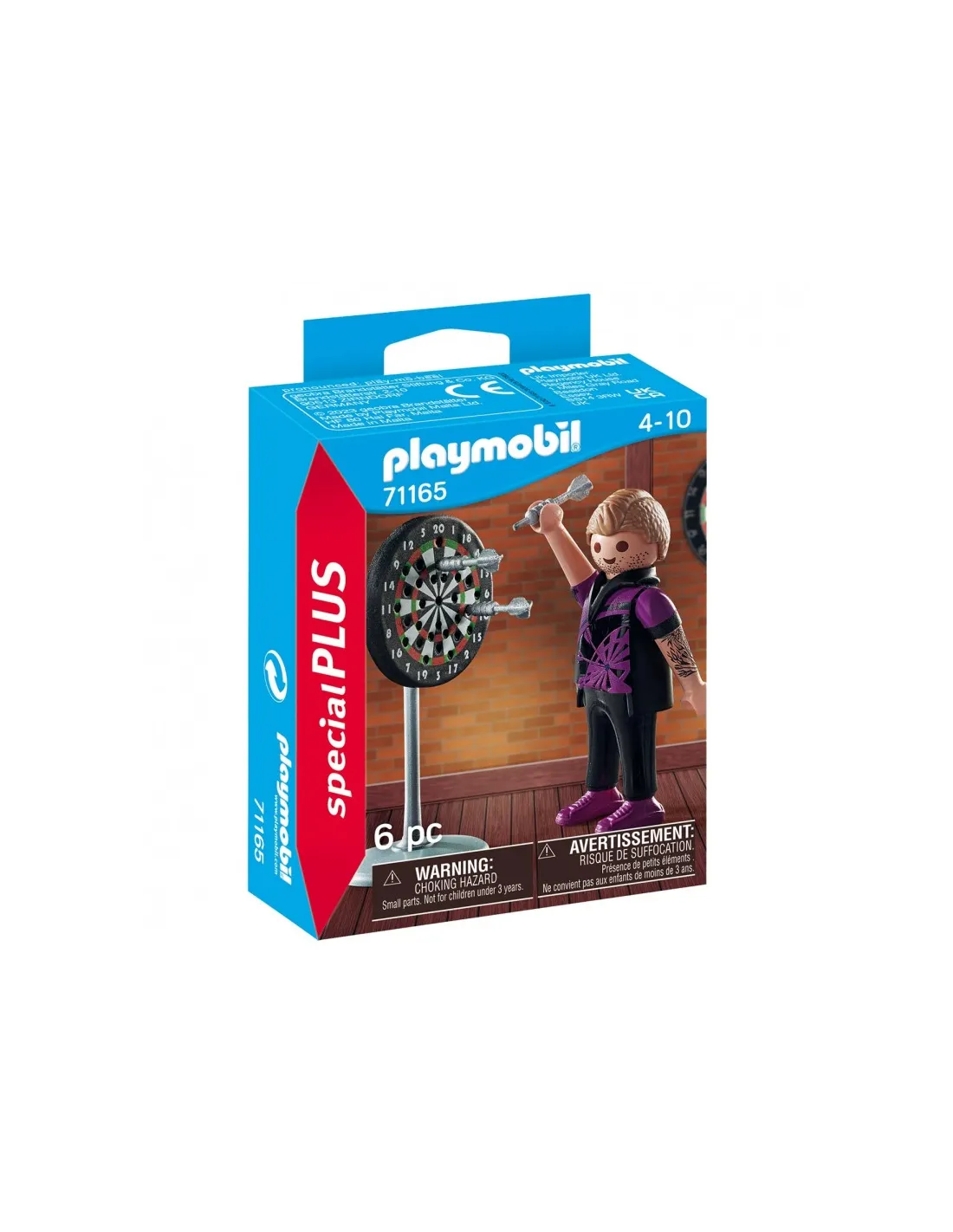 Los dardos no slo son un pasatiempo popular, sino tambin un deporte exigente. El jugador de dardos se entrena a diario para mejorar su habilidad y concentracin. Con habilidad, lanza los dardos en la diana. Si acierta, puntuacin perfecta! El juego incluye una figura PLAYMOBIL, una diana y tres dardos. Los dardos pueden ser sostenidos por la figura en la mano y fijados en 31 posiciones diferentes de la diana. Las figuras PLAYMOBIL Special Plus ofrecen una gran diversin de juego con muchos accesorios a partir de 4 aos. Se puede jugar solo con las figuras de forma individual o combinadas con otras gamas de PLAYMOBIL.