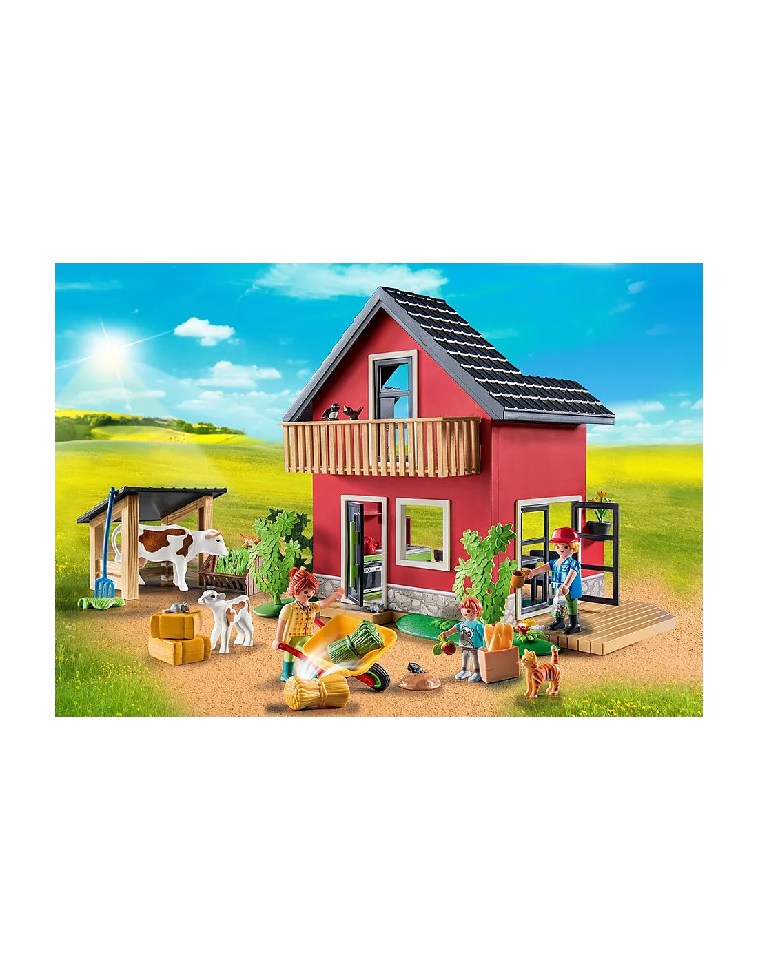 El mundo de la granja PLAYMOBIL ofrece gran diversin de juego para los amantes de la naturaleza. En la granja amueblada con una acogedora zona de estar, toda la familia se siente como en casa. Aqu cocinan, viven y ren. La familia se toma un descanso y se relajan del duro trabajo en la pequea terraza de la primera planta. Todos los das, hay que alimentar a la vaca y al ternero en el establo y cuidar a todos los dems animales de la granja. PLAYMOBIL ofrece innumerables oportunidades de juego con edificios detallados, vehculos realistas y personajes adorables que reflejan la vida cotidiana de la granja de forma emocionante.