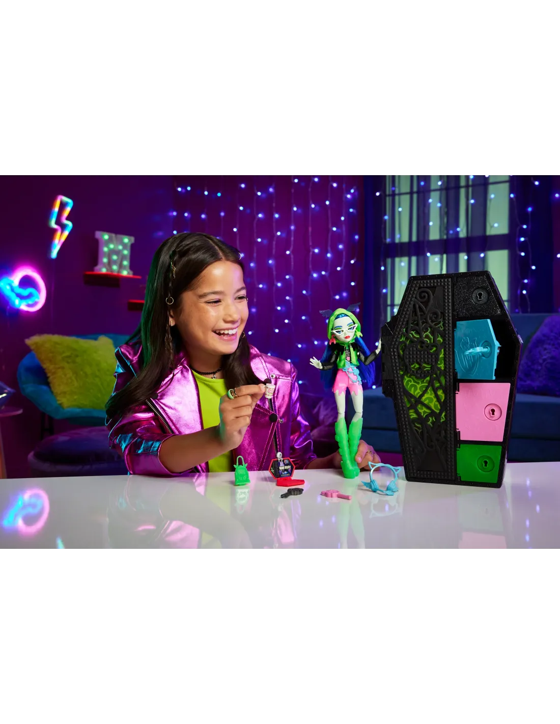 Monster High HNF81. Tipo de muñeca: Muñeca fashion, Género de muñeca: Femenino, Edad recomendada (mín.): 4 año(s), Género: Niño/niña. Altura: 323,9 mm. Material: Plástico, Tela, Color del producto: Multicolor
