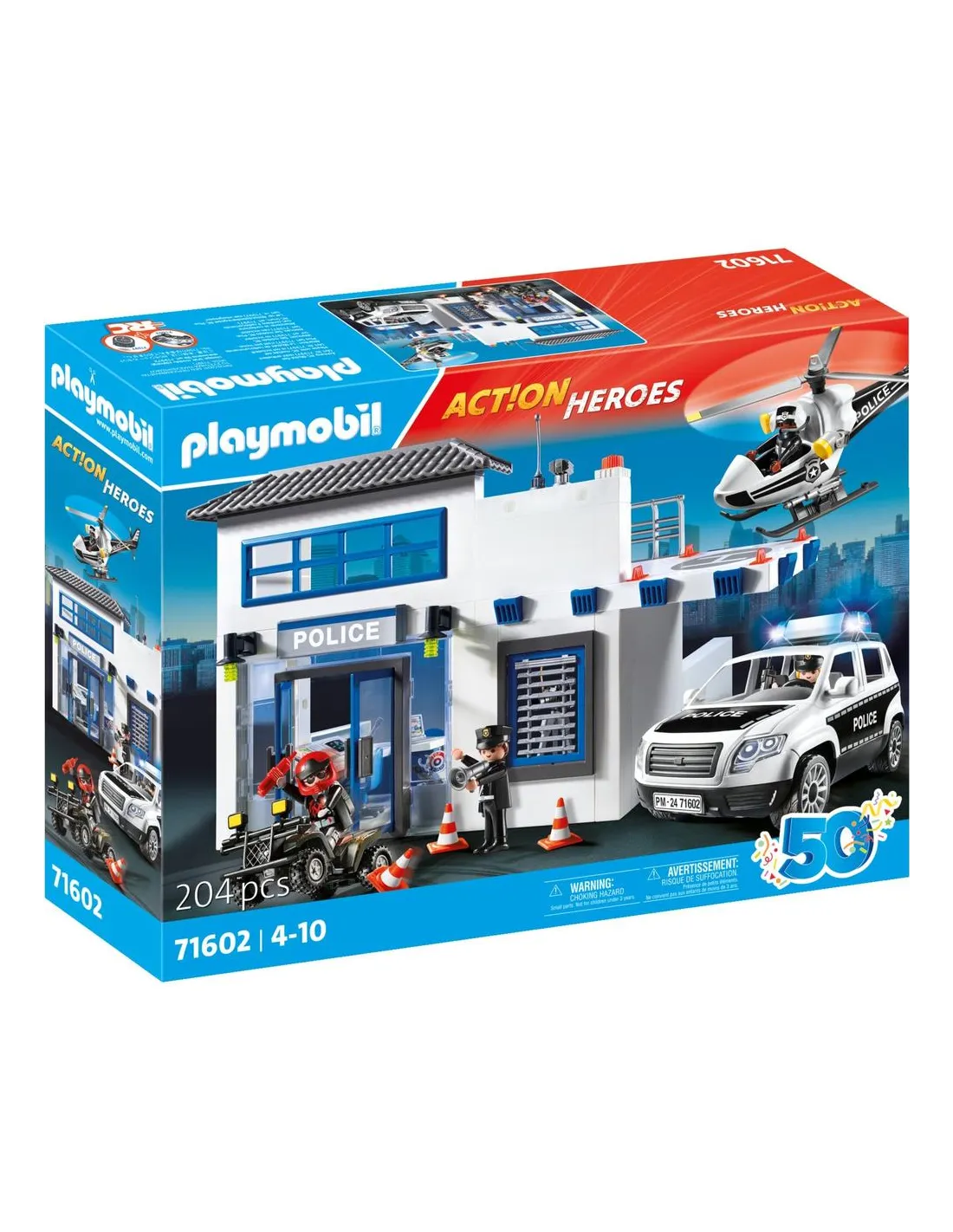 capturados pueden escapar de las dos celdas. La comisaría tiene espacio para un vehículo policial (no incluido), y en el tejado hay un helipuerto.