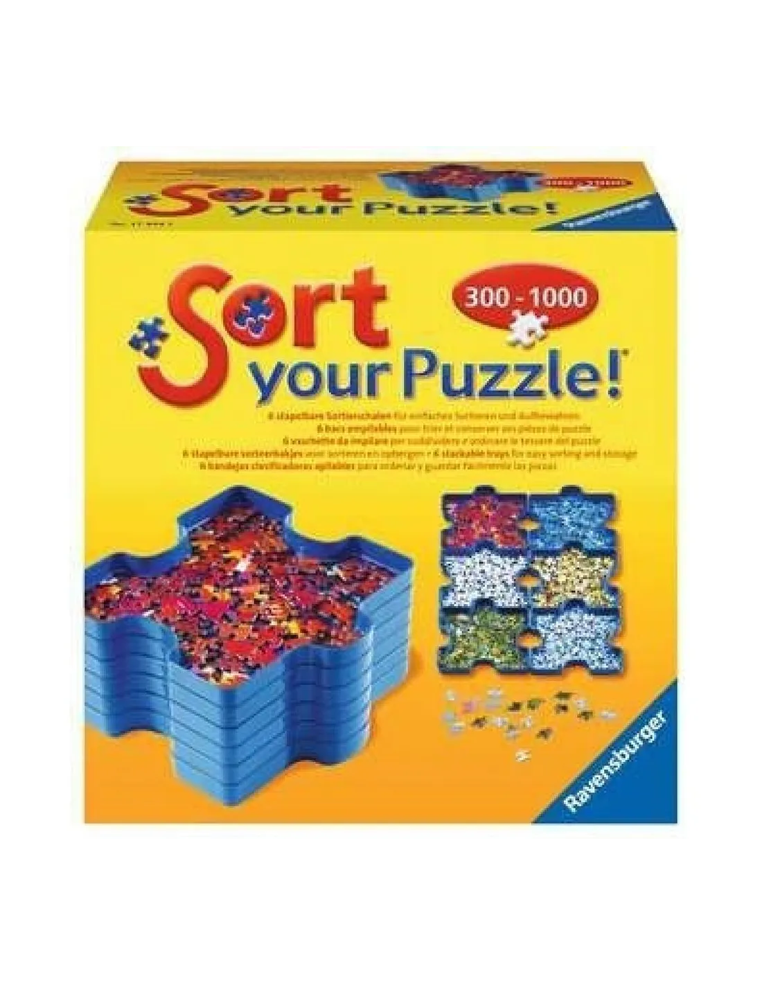 Recipiente guarda piezas. Conjunto de recipientes con forma de pieza de puzzle que permite separar las piezas en función de los colores de las mismas de manera que facilite el montaje del puzzle final. Producto licenciado y 100% original.