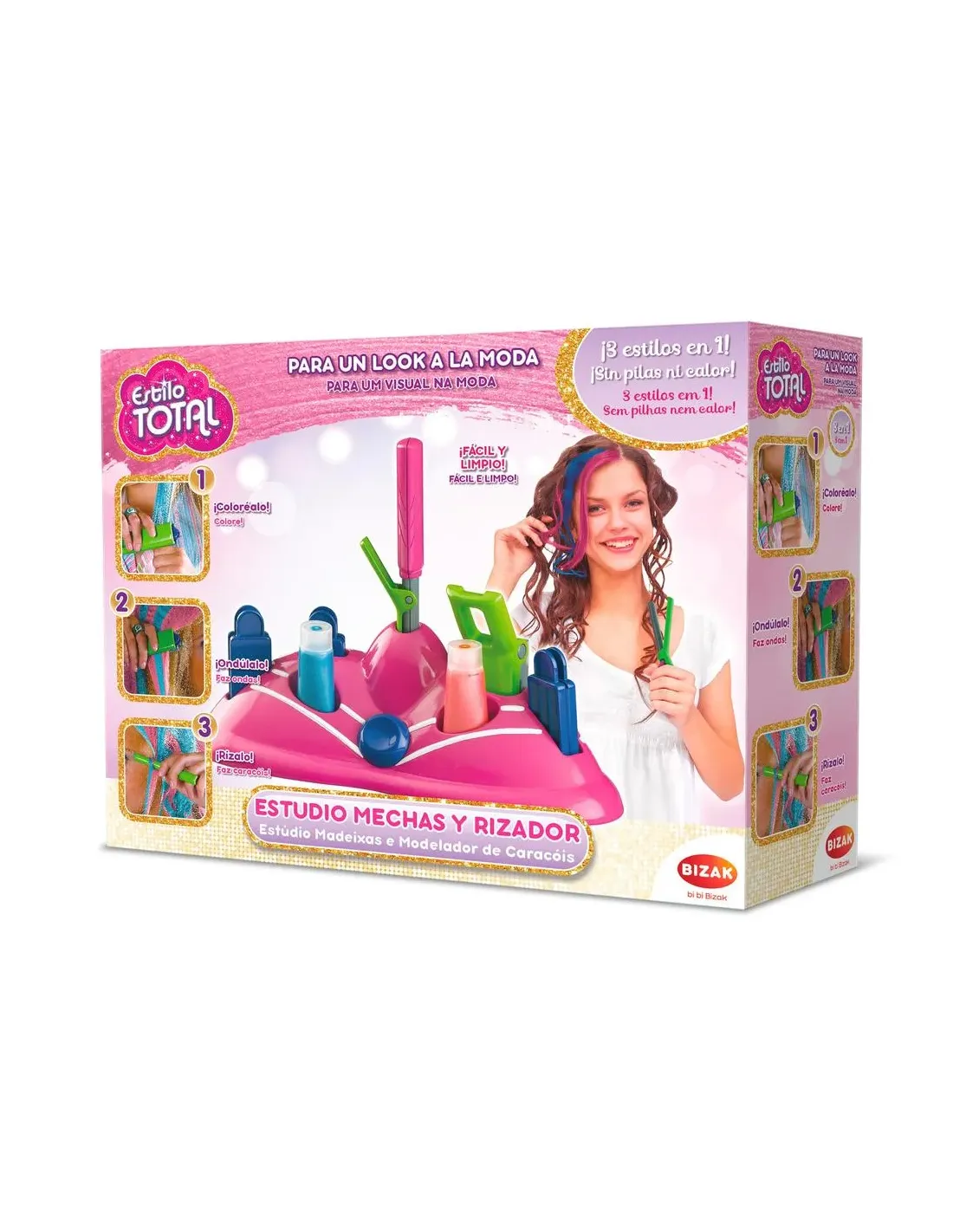 ¡Crea tus nuevos look con este completo set Estudio Mechas y Rizador 3 en 1! Elige el color que prefieras, aplícalo sobre un mechón de tu pelo utilizando la tenaza y ya estarás lista para lucir mechas decolor. Pero además ¡puedes rizar u ondular tu pelo en solo unos segundos! Da color a tu pelo, rízalo y ondúlalo ¡para ser la chica más fashion de tu clase!