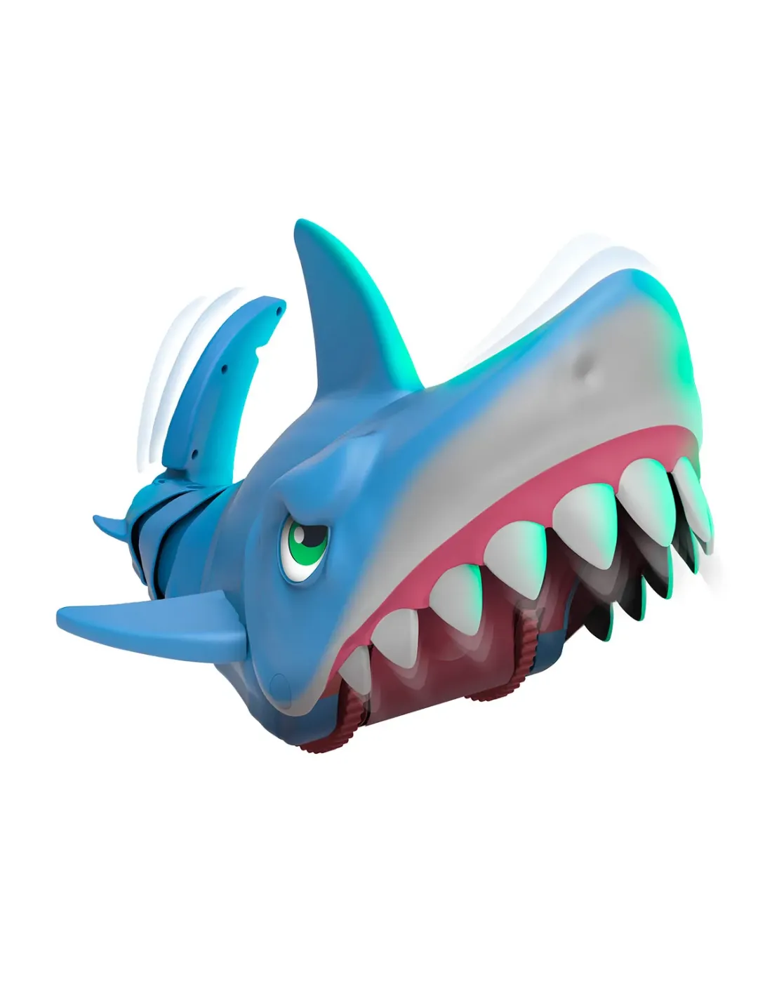 Mega Mandíbulas con cola articulada y con mandíbulas mordedoras, quenada como un Tiburón de verdad. Mega Mandíbulas viene a conquistar latierraya nada le detiene. Listo para la invasión de los tiburones. Coloca suboca en la posición de MegaMordisco y atrapará todo lo que entre en suboca. Asusta de un mordisco a tus amigos. Tecnología 2,4ghz. ¡¡Grantamaño y con sonidos!!
