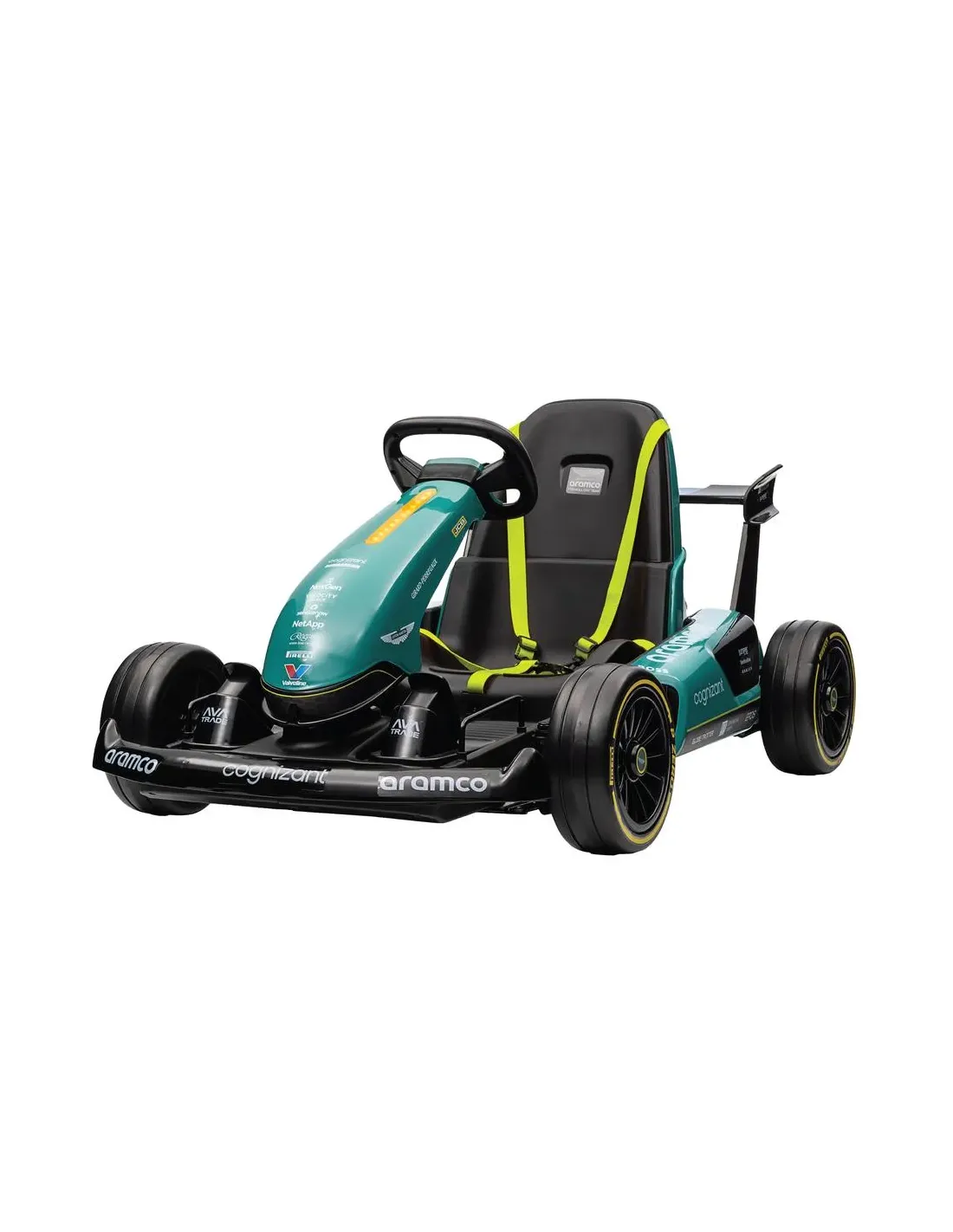 -GENERAL Nombre del producto: Bizak Aston Martin Kart F1 Tipo: Coche eléctrico infantil Licencia: Oficial Aston Martin Edad recomendada: A partir de 6 años Peso máximo soportado: 50 kg -DISEÑO Y FUNCIONALIDAD Diseño realista: Réplica del modelo de Fórmula 1 de Fernando Alonso Uso: Interior y exterior Colores y acabados: Decoración deportiva con detalles de carrera -CONDICIONES DE USO Velocidades: 2 (de 3.5 a 7 km/h) Dirección: Volante ajustable en altura Pedales: Ajustables hacia delante y atrás Direcciones de conducción: Marcha adelante y marcha atrás -BATERÍA Tipo de batería: 12V 7AH Autonomía: Variable según uso Tiempo de carga: Entre 8 y 12 horas Indicador de batería baja: Sí -ELEMENTOS DE SEGURIDAD Cinturón de seguridad: Incluido Ruedas: Anchas para mayor estabilidad Materiales: Probados y seguros para uso infantil -SONIDO E ILUMINACIÓN Luces: - Delanteras - De freno Tipo de luces: Eléctricas Sonidos: - Motor - Música vía Bluetooth desde móvil -CONECTIVIDAD Y CONFORT Bluetooth: Sí, para reproducción musical desde móvil Volante: Material EVA, ajustable Incluye: - Efectos de sonido realistas - Conducción sencilla y adaptada a niños -CONTENIDO DEL EMBALAJE 1 x Kart eléctrico Aston Martin 1 x Cinturón de seguridad 1 x Cargador Manual de usuario -RECOMENDACIONES Supervisión de un adulto durante el uso Usar en superficies planas y seguras Evitar zonas con tráfico o pendientes pronunciadas