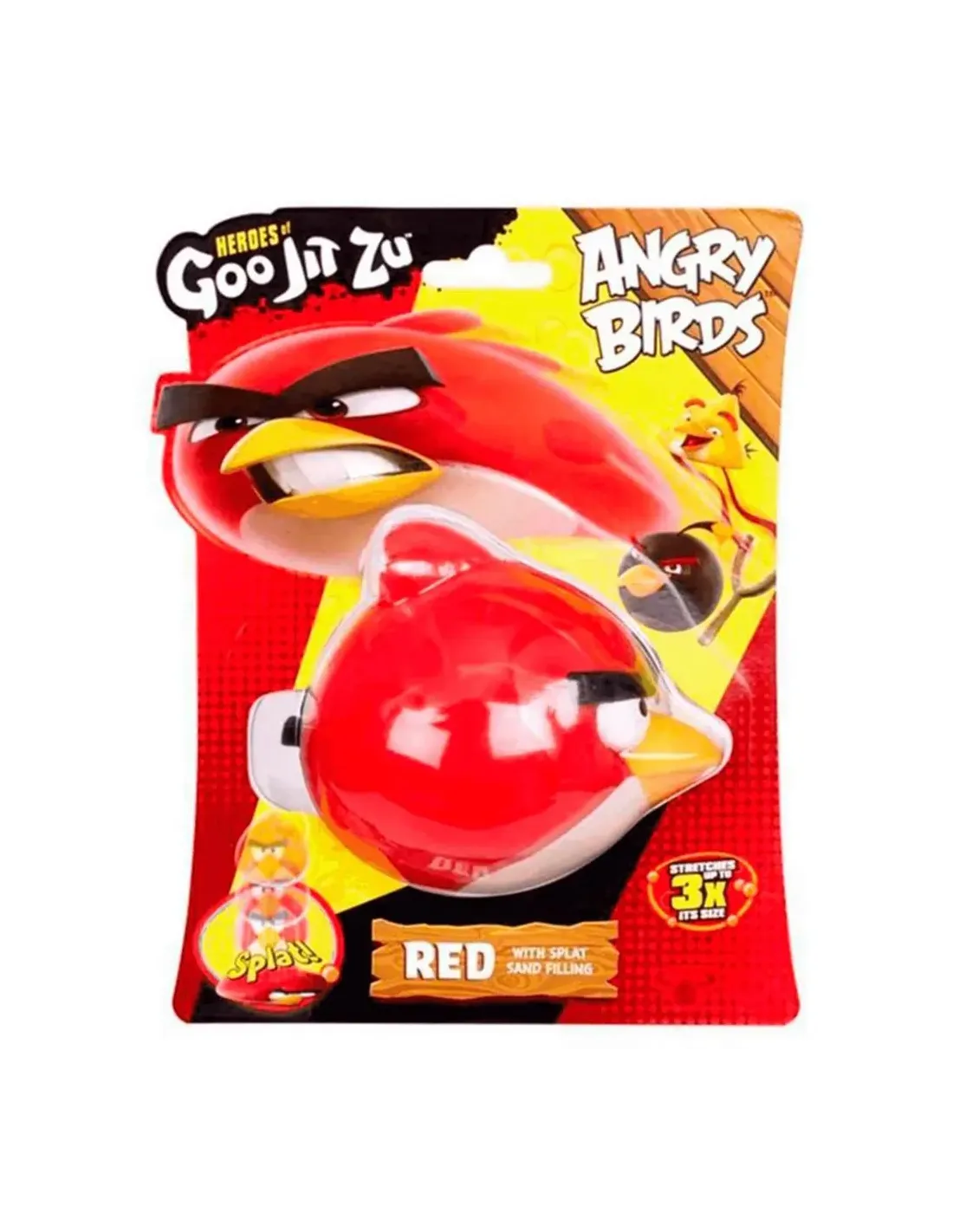 Características de la Figura Angry Birds Rojo Goo Jit ZuLa **figura elástica Angry Birds Rojo de Goo Jit Zu** está diseñada para ofrecer a los más pequeños una experiencia de juego interactiva, segura y llena de diversión. Ideal para niños a partir de 4 años, esta figura combina el carisma del icónico personaje Red de Angry Birds con la textura elástica y aplastable típica de la línea Goo Jit Zu. Perfecta para estimular la imaginación y aliviar el estrés con horas de juego sin parar.Elasticidad y textura sensorialGracias a su relleno especial de arena, esta figura proporciona una sensación única al tacto. Es ideal para apachurrar, estirar y volver a su forma original sin daños, lo que la hace perfecta tanto para jugar como para liberar tensión de forma segura.Material elástico y resistenteRelleno interior con textura de arenaNo requiere pilas ni componentes electrónicosInspirada en el universo Angry BirdsForma parte de la colección oficial de figuras Angry Birds x Goo Jit Zu. Su diseño fiel al personaje de Red y su acabado detallado la convierten en una pieza coleccionable atractiva para fans de todas las edades.Figura basada en el personaje Red de Angry BirdsCompatible con otras figuras Goo Jit ZuIdeal como regalo o elemento de colecciónOtras especificacionesEdad recomendada: A partir de 4 añosNúmero de modelo: CO08150Dimensiones: 17,5 x 24 x 8 cmNo requiere pilas