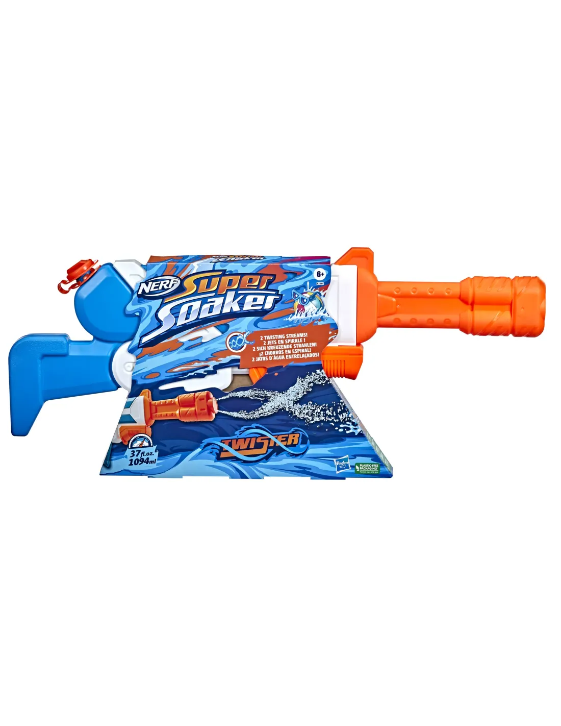 ¡Lanza 2 chorros de agua con el lanzador de agua Nerf Super Soaker Twister! Dirígete al exterior y vierte la diversión con este lanzador Super Soaker. ¡Cuando bombeas la manivela, un cilindro en la punta del barril gira para crear una doble hélice de agua para rociar a la competencia! Añade un toque de remojo a tus batallas de agua con el lanzador de agua Twister. Es fácil de llenar y disparar. Abra el tapón, llene el depósito, cierre el tapón y bombee la manivela hacia delante y hacia atrás. Sumérgete en juegos acuáticos al aire libre con este lanzador de agua Nerf Super Soaker que desata chorros de agua giratorios. La capacidad del tanque es de 1.1 litros. La marca Nerf Super Soaker ha estado vertiendo la diversión desde 1989 y continúa empapando a todos con el caos del agua. Sal a la calle para empaparte de forma extrema con los lanzadores Nerf Super Soaker. Nerf Super Soaker y todas las propiedades relacionadas son marcas registradas de Hasbro.