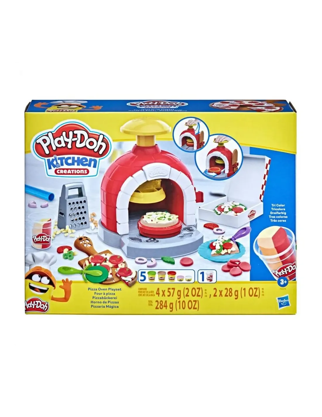 Características del Juego Hasbro Play-Doh Pizza Oven PlaysetEl **Play-Doh Pizza Oven Playset** de Hasbro es un divertido horno de pizzas pensado para niños a partir de **3 años**, ideal para desarrollar su creatividad y habilidades manuales mientras juegan a ser chefs. Este set permite que los más pequeños **imiten el proceso de hacer pizza**, desde la masa hasta los ingredientes, moldeando con plastilina Play-Doh de forma segura y colorida.Imaginación y creatividad al estilo italianoEste horno de juguete transforma la plastilina en sabrosas creaciones imaginarias. Los niños podrán **moldear masas, agregar ingredientes y servir sus propias pizzas**, fomentando el juego simbólico y la expresión creativa. Es perfecto como regalo de **cumpleaños, fiestas** o simplemente para disfrutar en casa con actividades de manualidades.Incluye horno de pizzas con moldes integradosIdeal para juegos creativos y simulación de cocinaRecomendado para niños a partir de 3 añosDiseño seguro y adaptado para los más pequeñosEl set está fabricado con materiales seguros y cumple con los estándares internacionales. La plastilina Play-Doh es **no tóxica** y contiene **trigo**, por lo que se recomienda supervisión adulta. Además, el horno requiere montaje por parte de un adulto antes del primer uso.No tóxico. Conforme a la norma ASTM D-4236Advertencia: contiene trigo. No ingerirRequiere montaje por un adultoOtras especificacionesLos resultados pueden variar según la edad y habilidad del niñoLos productos y colores pueden variar respecto a las imágenes