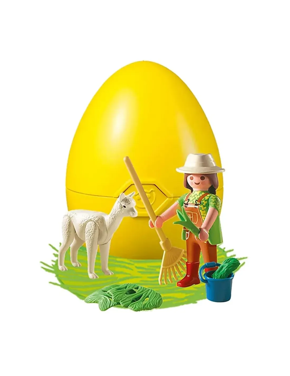 ¡Finalmente es la hora de comer para la alpaca!¡Únete a la fiesta! PLAYMOBIL cumple 50 años y ¡estamos celebrando! En 1974, un obrero de construcción, un caballero y un indio aparecieron por primera vez, conquistando los corazones de niños y niñas.Durante 50 años, estas figuras con sus sonrisas han inspirado a niños y niñas a contar sus propias historias y vivir infinitas aventuras en el mundo de la imaginación. Con seis coloridos huevos de Pascua pararegalar y coleccionar, celebramos nuestros 50 años. Este conjunto de juego incluye una figura de PLAYMOBIL, una alpaca, un huevo grande para abrir, cubos, un rastrillo, un sombrero y otros extrasencantadores. Diversión para coleccionar a partir de 4 años.