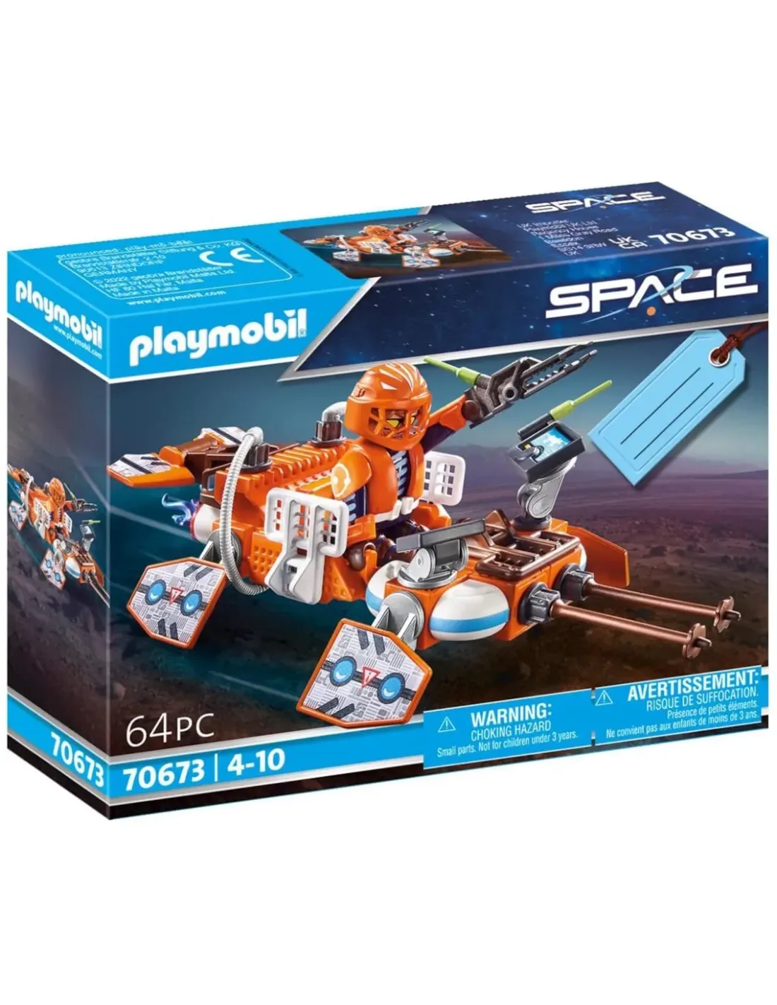 Únete al astronauta en su camino a través de la inmensidad del espacio consu genial Space Speeder. Para explorar la superficie del planeta, el pilotosube a su acelerador, pliega los escudos y despega. Si algo se rompe, tienesus grandes alicates con él. ¡Ve a la próxima aventura! Los grandes juegosde regalo de PLAYMOBIL cuentan con una etiqueta de regalo en la caja pararellenarEl velocímetro espacial asienta una figuraIncluye características móvilesUna figura incluidaLa caja cuenta con una etiqueta de regalo para rellenar