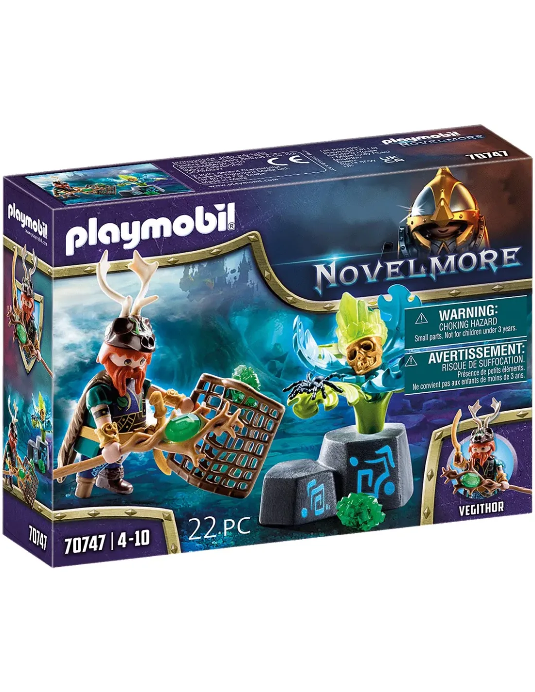 incluye escondite de plantas y red de recogida.Vegithor es el poderoso mago de las plantas. Lo sabe todo sobre hierbas,árboles, arbustos y plantas y por supuesto sobre cómo elaborar laspociones más eficaces con ellas. A través de su magia, Vegithor es capazincluso de influir en el mundo de los animales y las plantas. Acaba dedescubrir unos valiosos cristales. Vegithor agita la varita mágica y la plantaabre sus hojas y desvela un raro cristal. ¡Qué precioso hallazgo!Inmediatamente, el mago pone en cristal su red de recogida y se dirige a latorre del mago. El set de juego contiene a Vegithor el mago de las plantas,una araña, una planta de la jungla con hojas móviles, una varita mágica, doscristales, una calavera y muchos más extras mágicos.