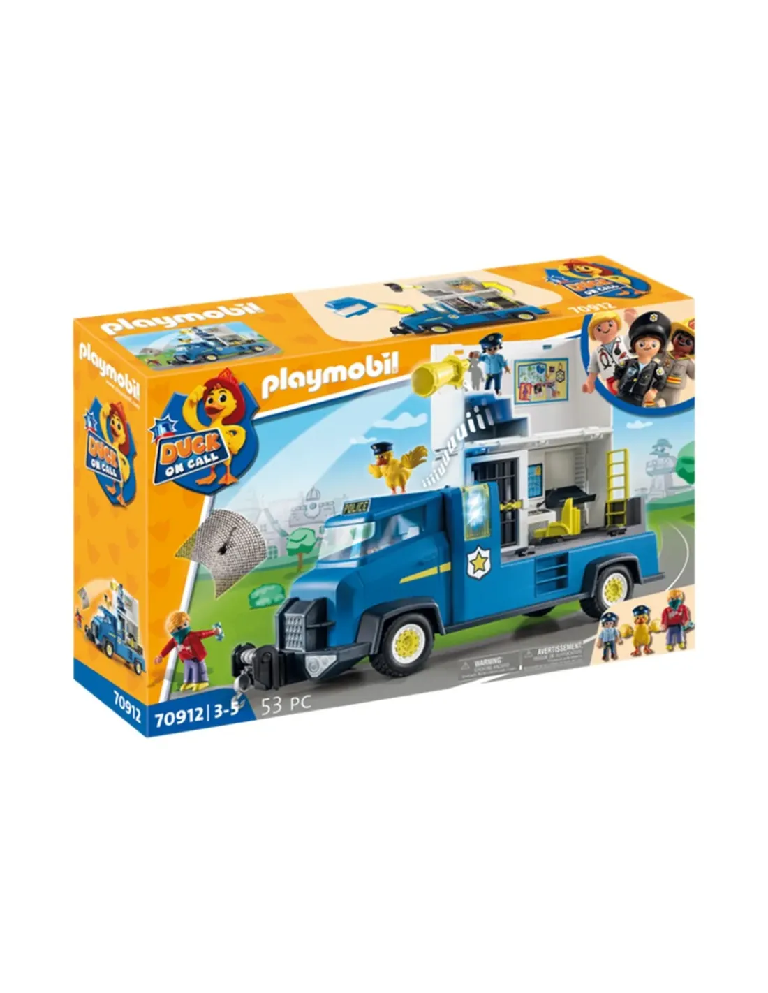 Camión Playmobil Duck On Call Plizei con efectos de luz y sonidointegrados.Los villanos pueden ser capturados en la estación de comando conbisagras con celda de prisión. ¡Espero que no intenten escapar!Juego de juguetes para niños de 4 años en adelante: ideal para lasmanos de los niños debido al tamaño apropiado para la edad y lasensación agradable con bordes redondeado.Juego diario: instrucciones para ensamblar junto con los padres, diseñorobusto y de alta calidad, limpie las piezas (sin pegatinas) con aguacorriente sin productos químicos.