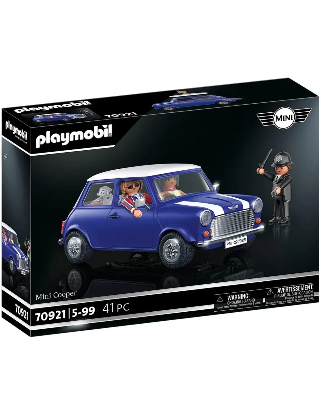 El coche clásico y el milagro espacial de Gran Bretaña. Ahora también dePLAYMOBIL: figuras y accesorios de una escena londinense de los años 70.Todos los amantes de los coches esperan un verdadero icono británico: elMini Cooper. No solo Mr. Bean, sino también los Beatles, condujeron estelegendario coche de culto. Como ningún otro coche, el Mini Cooperrepresenta el clásico estilo británico en un paquete pequeño, divertido yágil.No es de extrañar que el diseño del Mini original haya permanecido casi sincambios durante casi cuarenta y un años. El Mini Cooper ofrece muchocoche en poco espacio: para el diseñador Alec Issigonis, el "uso creativodel espacio" y el "enfoque en lo esencial" eran tan importantes que nohabía espacio para la calefacción o la radio, y se utilizaron ventanillascorrederas en lugar de ventanillas retráctiles.Al igual que el original, este modelo de PLAYMOBIL hará que el corazón detodo coleccionista lata más rápido. El portón trasero se puede abrir y cuatrofiguras caben en el pequeño interior a través del techo desmontable.El Mini Cooper de PLAYMOBIL no solo brilla por su detallado diseño, sinotambién por sus detalles cromados. Al igual que un coche inglés, el volantey el asiento del conductor están en el lado derecho. Además de dos figurascon coloridos trajes de los años 70 y un dálmata, el set también incluye unpolicía con el clásico uniforme inglés. Dimensiones: 18,5 x 10 x 8 cm. (largox ancho x alto).Recomendado para edades comprendidas entre los cinco y los noventaaños. Advertencia. Peligro de asfixia. Piezas pequeñas. No apto para niños yniñas menores de 3 años.