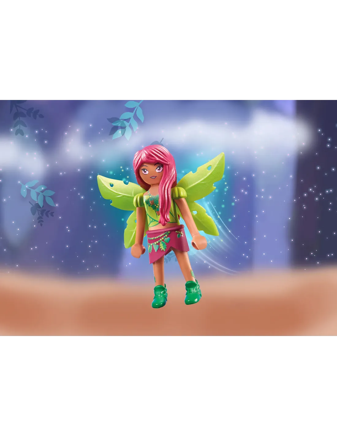 Forest Fairy Leavi cuida con mucho gusto de los animales y las plantas del bosque de las hadas. Bajo su cuidado, todo crece y prospera esplndidamente. Pero, aunque los intrusos se cuelen en el bosque de las hadas, Leavi no est en absoluto indefensa. Con su hechizo de atar plantas, puede retener a los visitantes indeseados y dejarlos fuera de combate. Siempre a su lado en todas sus aventuras est su fiel animal del alma, el Bho. Con personajes encantadores, historias mgicas y grandes efectos, las figuras de juego Ayuma de PLAYMOBIL invitan a un juego de roles creativo. Fantstica diversin a partir de 7 aos. El juguete contiene a Forest Fairy Leavi, as como un par de ala. Tambin se incluyen en el set pegatinas y una tarjeta con un efecto de arco iris. Experimenta la fantstica serie de animacin Aventuras de Ayuma! Ahora en YouTube y YouTube Kids.
