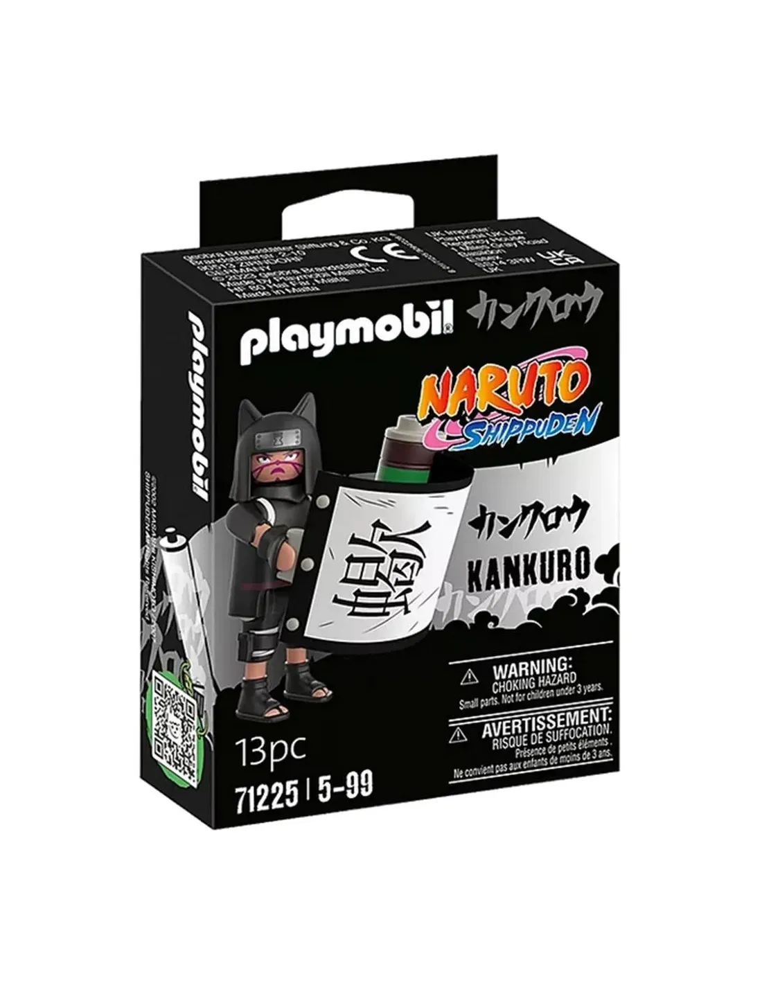 Kankuro es un Shinobi de Hidden Leaf. Su especialidad es el uso de varias marionetas armadas en combate.¡El universo Naruto de PLAYMOBIL continúa creciendo! Todos los fanáticos del anime esperan los nuevos personajes del emocionante universo NARUTO. Las figuras cautivan con muchos detalles y accesoriosa todos fanáticos del Anime. El set de PLAYMOBIL incluye al personaje de NARUTO SHIPPUDEN, Kankuro, completo con un casco con orejas de gato, bolsa en la pierna, protectores de brazos y un pergamino. Elpergamino es extensible y se puede enrollar girando la solapa lateral. La figura se puede fijar a la placa base para mayor estabilidad.