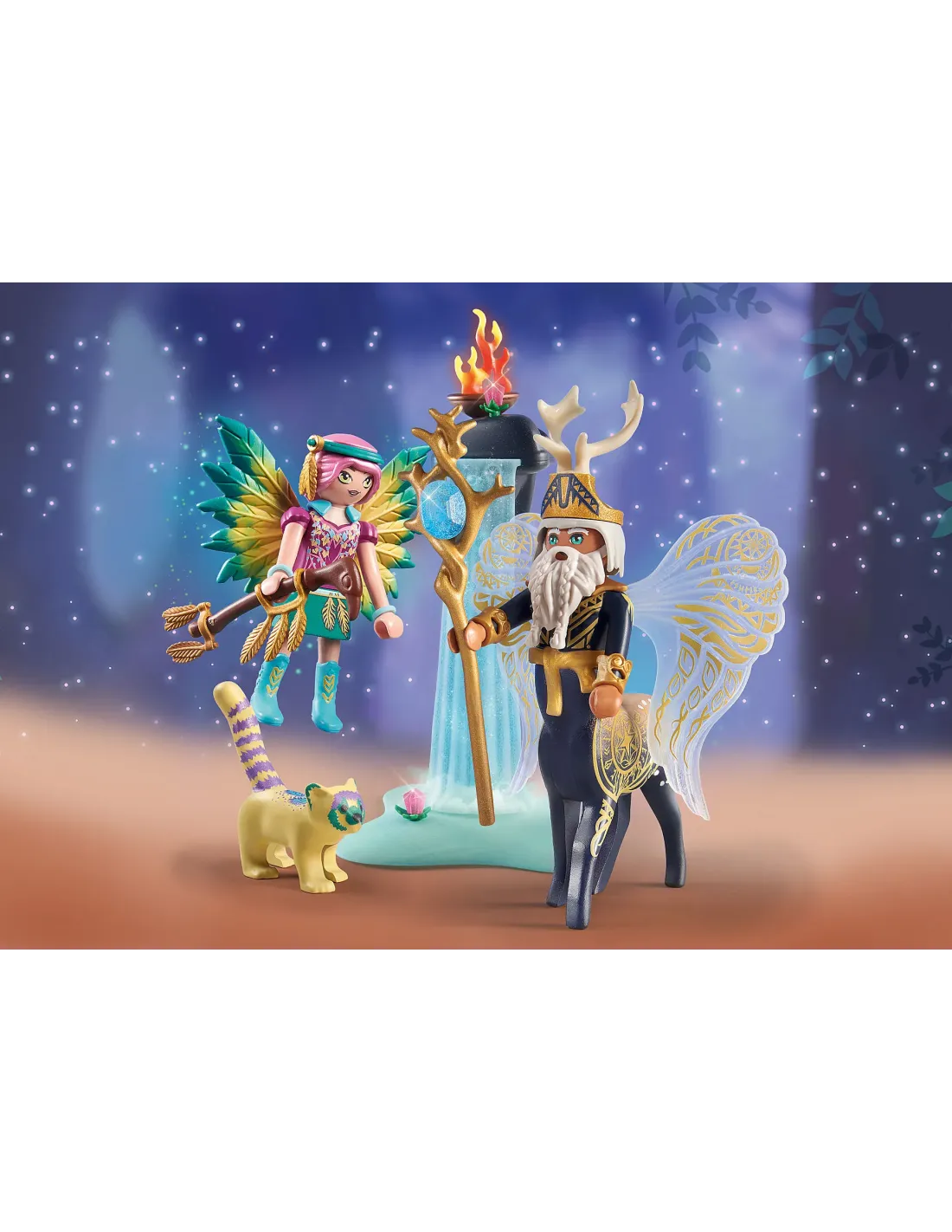Una peligrosa niebla desciende sobre Ayuma y provoca una gran confusin en el reino de las hadas. Incluso la nueva Knight Fairy Hildi y el poderoso Abjatus quieren ayudar a desterrar la niebla yexpulsarla de Ayuma. Afortunadamente, Hildi tiene a su lado a su animal del alma, un panda amarillo. Para discutir su plan, Abjatus e Hildi se renen en la cascada flotante. Seguro que entre los dos seles ocurre algo para acabar con la niebla. Con personajes y animales mgicos, as como grandes efectos, los sets de juego Ayuma de PLAYMOBIL invitan a aventuras creativas de rol. Fantstica diversin apartir de 7 aos. Especificaciones: El set de juguetes contiene 32 piezas: dos figuras de hadas PLAYMOBIL, un panda de animales del alma, una cascada con piedra flotante, cetro de cristal, cuenco defuego, bola de cristal y muchos ms extras mgicos. Las alas de Abjatus brillan en la oscuridad. Descubre la nueva experiencia de montaje: Gracias a las bolsas numeradas, la diversin comienza nada msdesembalar! Experimenta la fantstica serie de animacin Aventuras de Ayuma! Ahora en YouTube y YouTube Kids.