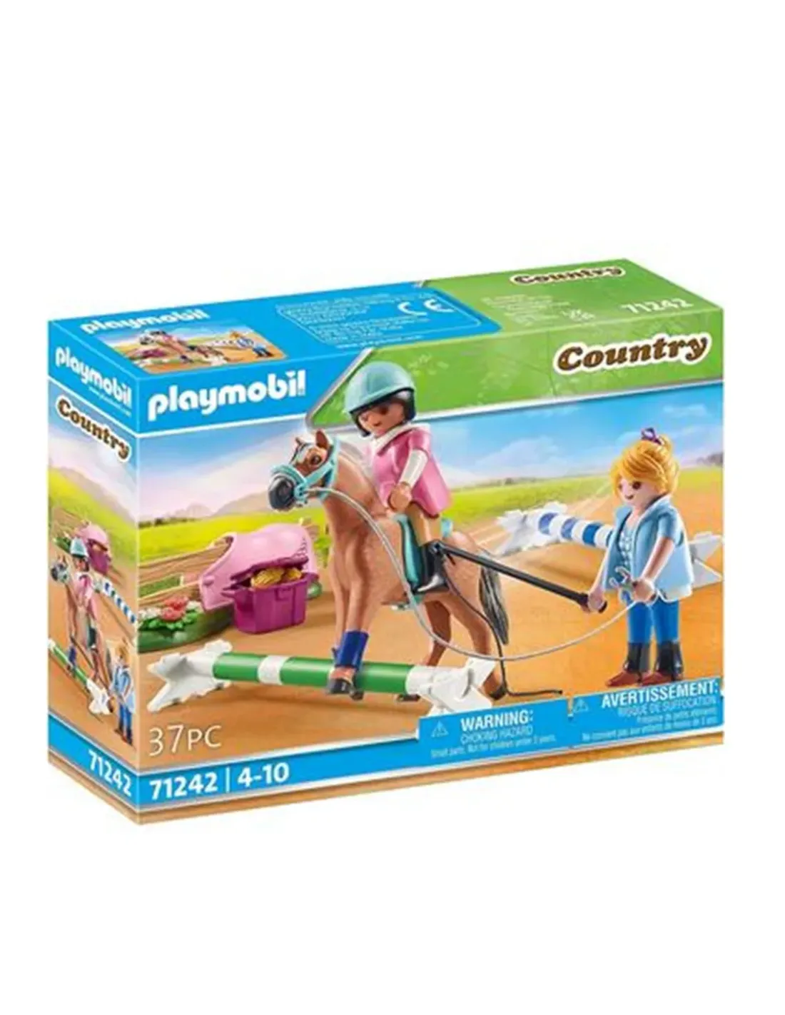 Los obstáculos para el concurso de saltos pueden modificarse como se desee. Además, los jinetes están coordinados por colores con la brida de los caballos.¿Necesita más espacio para sus caballos? Entonces esta extensión del establo de equitación PLAYMOBIL es justo lo que necesitas. En el box del caballo, el poni puede ser cuidado y alimentado y através de la puerta del box sale al corral. Sin duda, lo mejor para los humanos y los animales es un relajante paseo al aire libre. Con las etiquetas en blanco se puede escribir el nombre del caballo ypegarse en la puerta del establo. Este set de caballos, incluye una figura PLAYMOBIL, un poni, una extensión del establo, un abrevadero, una jardinera y muchos accesorios. El establo y la puerta sepueden abrir y cerrar. Un gran producto para los amantes de los caballos a partir de 4 años.